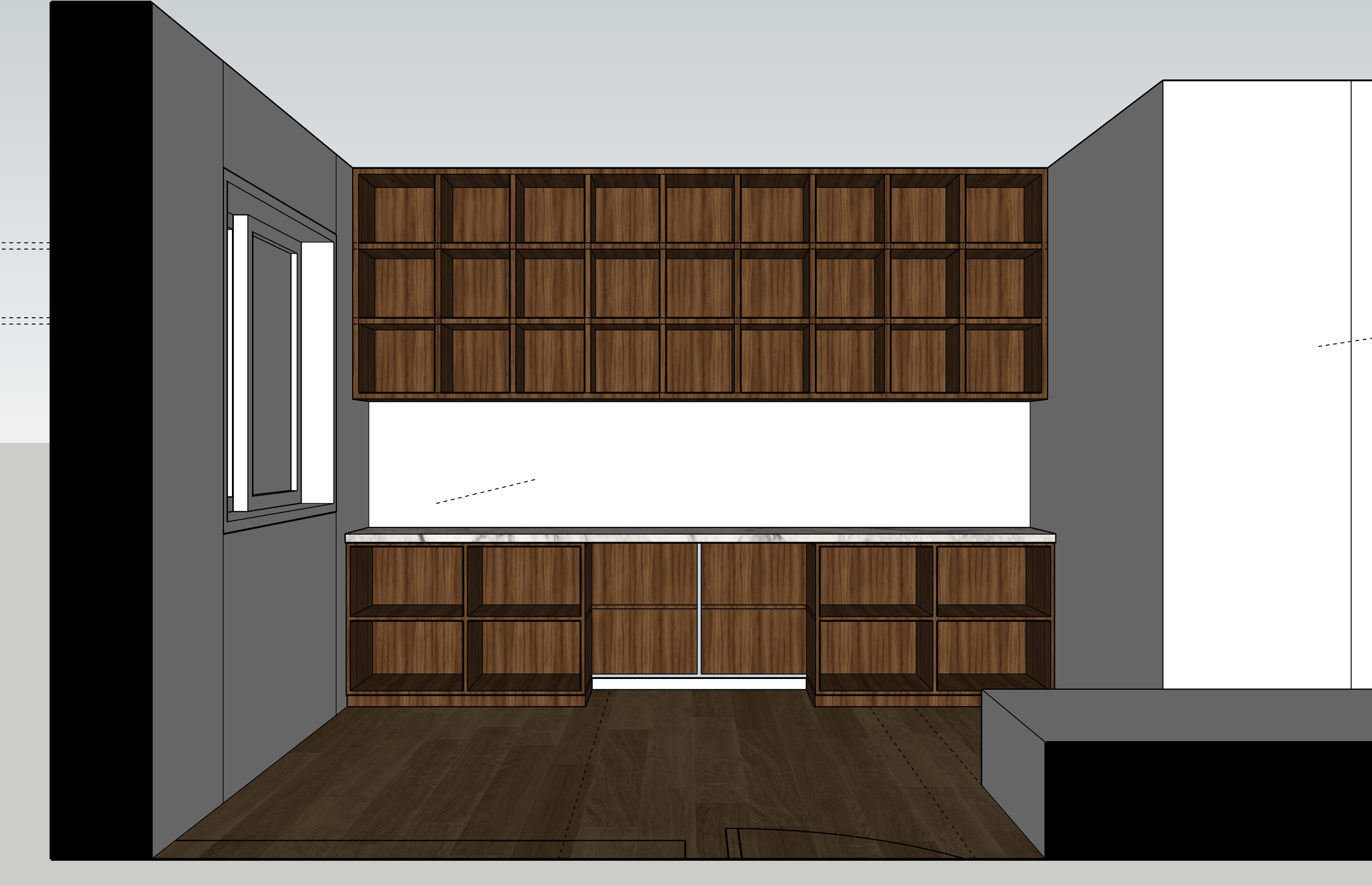 add decorative moulding around the wall stay true to the geometry of original counter should be white there is space for chair in the center of desk