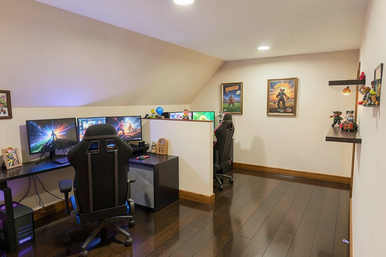change the finish of the reception desk to a medium dark wood enhance natural light to a sunny day exchange the curtains at the back to an even dark grey blue painted wall
