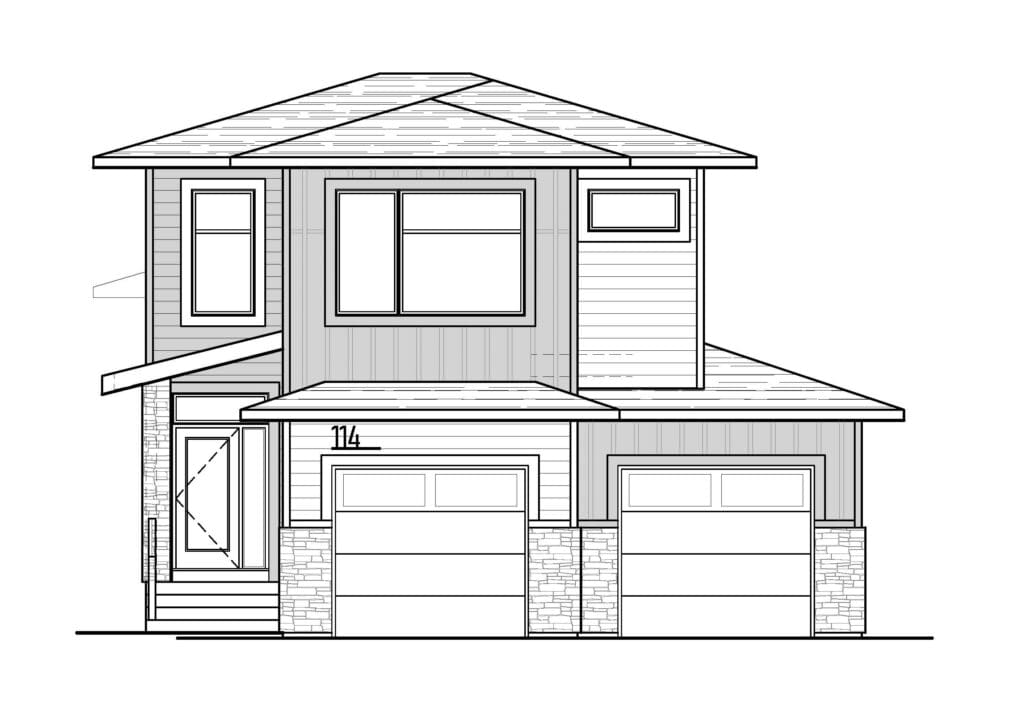 render this home using james hardie iron grey siding for the dark shaded siding areas and james hardie arctic white for the lighter shaded siding areas window are to be black garage doors are to be a lighter black shade house number is gold front entry door is to be the same black as the garage doors