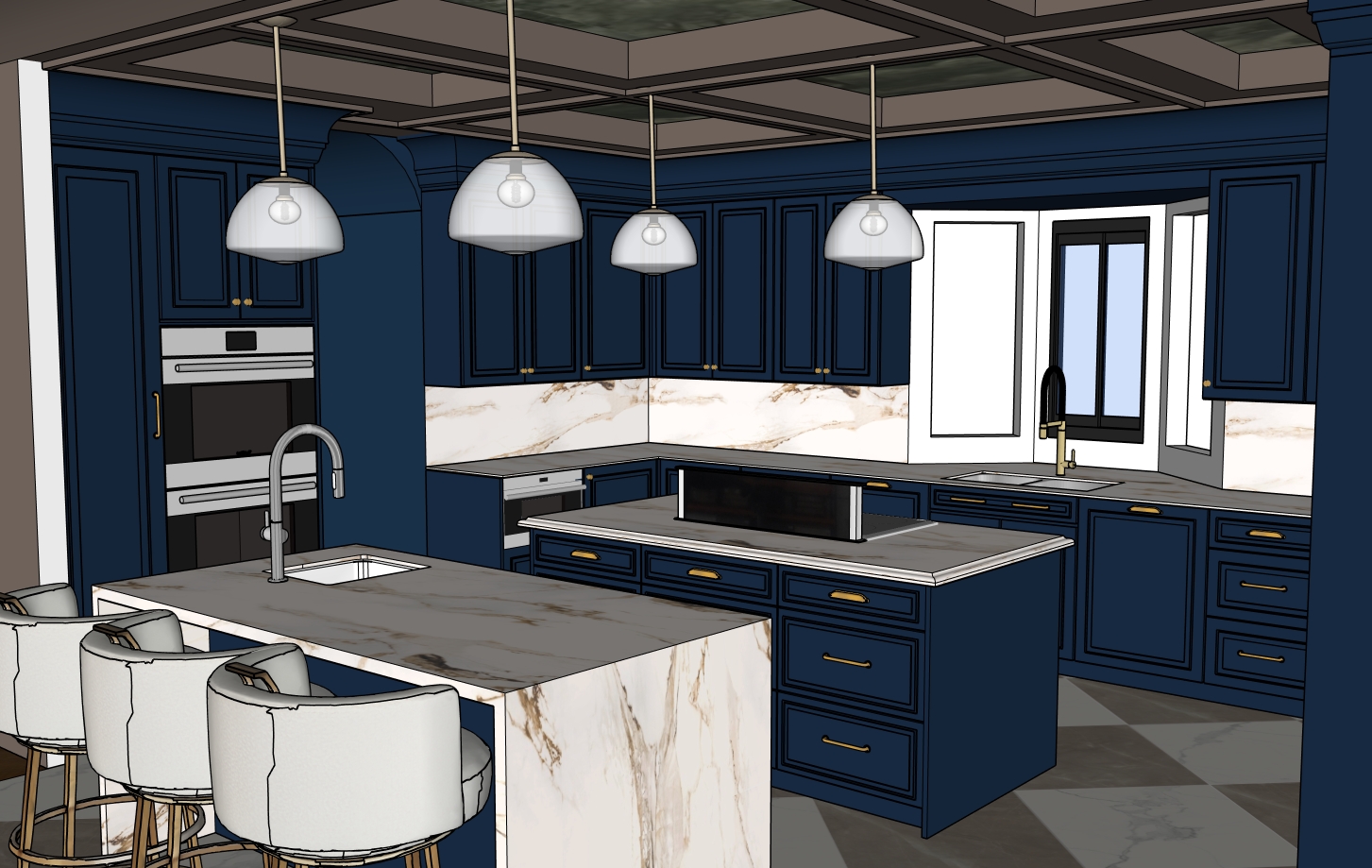 add lighting to light fixtures add natural light from windows and add kitchen items accessories to countertop and keep the ceiling the same colour