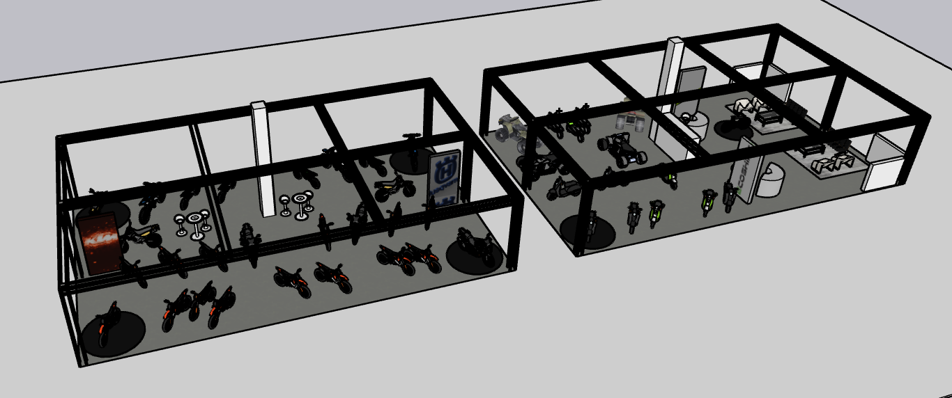 these are two island motorcycle exhibition stands the concept narrative the design principle an open arena no walls none this is not a cost decision it is an experience decision a wall closes a wall says this is not for you until you choose to enter an open stand says the opposite it says look come the machines are right there in the light waiting the visitor approaches from the main aisle of metropolitan expo and the entire 22 metre combined frontage of b2 and c2 is legible in a single glance two stands four worlds all of it visible all of it inviting the silver truss overhead unified across both b2 and c2 reads as one continuous architectural canopy beneath it the carpet colours shift the lighting shifts the content on the screens shifts but the structure is one the statement is one petropoulos owns this space petros petropoulos group moto expo 2026 visual design narrative v3 stand b2 ktm husqvarna stand c2 noos ecoshift can am lobby metropolitan expo 1 5 april 2026 confidential purpose of this document this is a visitor first design narrative written as the experience of a person walking into the petropoulos stand for the first time with no prior knowledge of what they will find every design decision is described through what the visitor sees feels hears and understands at each step of the journey the stand is built on three tools silver aluminium box truss as the unified structural and architectural language across both stands zone coloured exhibition carpet as the floor level identity system and large format led screens as the primary storytelling medium there are no solid walls anywhere on this stand the space is open breathable and fully visible from every approach angle because the machines are spectacular enough to sell themselves if only you give them the stage they deserve the design principle an open arena no walls none this is not a cost decision it is an experience decision a wall closes a wall says this is not for you until you choose to enter an open stand says the opposite it says look come the machines are right there in the light waiting the visitor approaches from the main aisle of metropolitan expo and the entire 22 metre combined frontage of b2 and c2 is legible in a single glance two stands four worlds all of it visible all of it inviting the silver truss overhead unified across both b2 and c2 reads as one continuous architectural canopy beneath it the carpet colours shift the lighting shifts the content on the screens shifts but the structure is one the statement is one petropoulos owns this space the truss one system two stands a unified grid of silver raw aluminium finish 290 mm box truss spans both stands in a continuous coherent system silver not black not white not painted the natural aluminium finish catches the exhibition hall s ambient light and throws it back as a warm glint it reads as precision engineering it reads as motorsport infrastructure it is entirely appropriate to everything exhibited beneath it geometry stand b2 ktm husqvarna 11 m wide 18 5 m long the b2 truss grid consists of two longitudinal runs of box truss at 3 m height spanning the full 18 5 m length spaced 11 m apart the full stand width supported on four vertical uprights one at each corner of the 11 18 5 m footprint four transverse cross members spanning the 11 m width one at each end and two evenly spaced through the interior creating a rigid rectangular grid from this grid hang all lights all screens all banners all brand identification geometry stand c2 noos can am lobby 11 m wide 18 5 m long the c2 truss grid is identical in structure to b2 same silver finish same 11 m 18 5 m footprint same four uprights same transverse rhythm the visual continuity between b2 and c2 is immediate and intentional the connecting span a single additional transverse truss run bridges the gap between b2 and c2 at the shared boundary at 3 m height from this connector hangs the petropoulos identification band a 10 m wide 1 2 m tall backlit fabric panel petropoulos wordmark in gold on deep charcoal centred between the two stands this is the crown of the arena visitors see it from 30 metres away before they see anything else designer note on the truss the silver truss is never disguised wrapped or apologised for it is a feature in b2 it will remind every visitor of a race car s roll cage in c2 s noos zone it will look like the interior of a high design industrial loft in the lobby it will read as the steel skeleton of a premium architectural space the truss is the same on every stand at every motorsport event in the world what makes it different here is how deliberately and consistently it is used and how beautifully the lighting plays off its surfaces the visitor journey from the aisle to the stand you are walking the main aisle of metropolitan expo the hall is busy stands compress on both sides temporary walls shell scheme partitions printed vinyl everywhere and then the petropoulos stand opens up no walls the silver truss grid overhead marks the space like a crown beneath it motorcycles scooters a three wheeled spyder flanking an entrance a glowing led screen the size of a cinema wall playing race footage a white carpet zone on one side a deep charcoal on the other a teal lit alcove in the distance a single illuminated e bike on a gold podium front and centre floating you stop you have not entered yet and you already know this stand is different you turn instinctively toward the petropoulos lobby at the centre of c2 because the gold pedestal and the glowing heritage wall behind it are the visual anchor point but to your left ktm s orange led strip draws your eye to your right the spyders are gate guardians you want to walk through there is no single correct path every direction is an invitation this is the experience the design must create everything that follows is in service of that moment stand b2 ktm husqvarna 11 m wide 18 5 m long 203 5 m raw performance meets scandinavian craft stand b2 is the perf