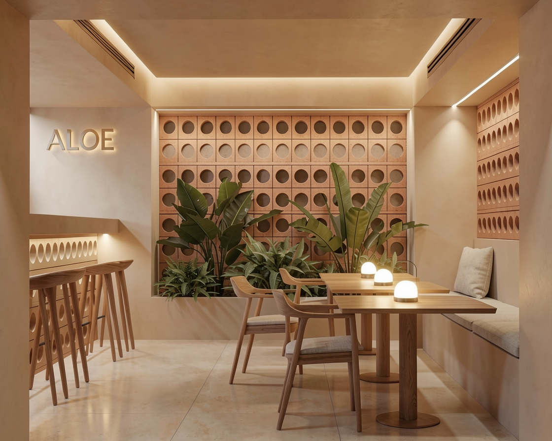 ultra realistic editorial render transform the image into a highly realistic high end editorial photograph preserve the original composition camera angle and design core improvements enhance all materials to feel natural and tactile avoid plastic or flat appearance improve texture definition wood grain stone fabrics metals glass add subtle imperfections tonal variation and depth to all surfaces lighting important consintent light composition and improve it consistent color temperature across the scene geometry detail improve edge definition while slightly softening sharp cgi edges refine small elements and object details for clarity and realism shadows depth stronger contact shadows and ambient occlusion add depth and separation between objects overall realism remove noise and artificial look avoid overly perfect or uniform surfaces ensure all materials respond correctly to light final look clean warm tactile photographic realism with a refined editorial aesthetic