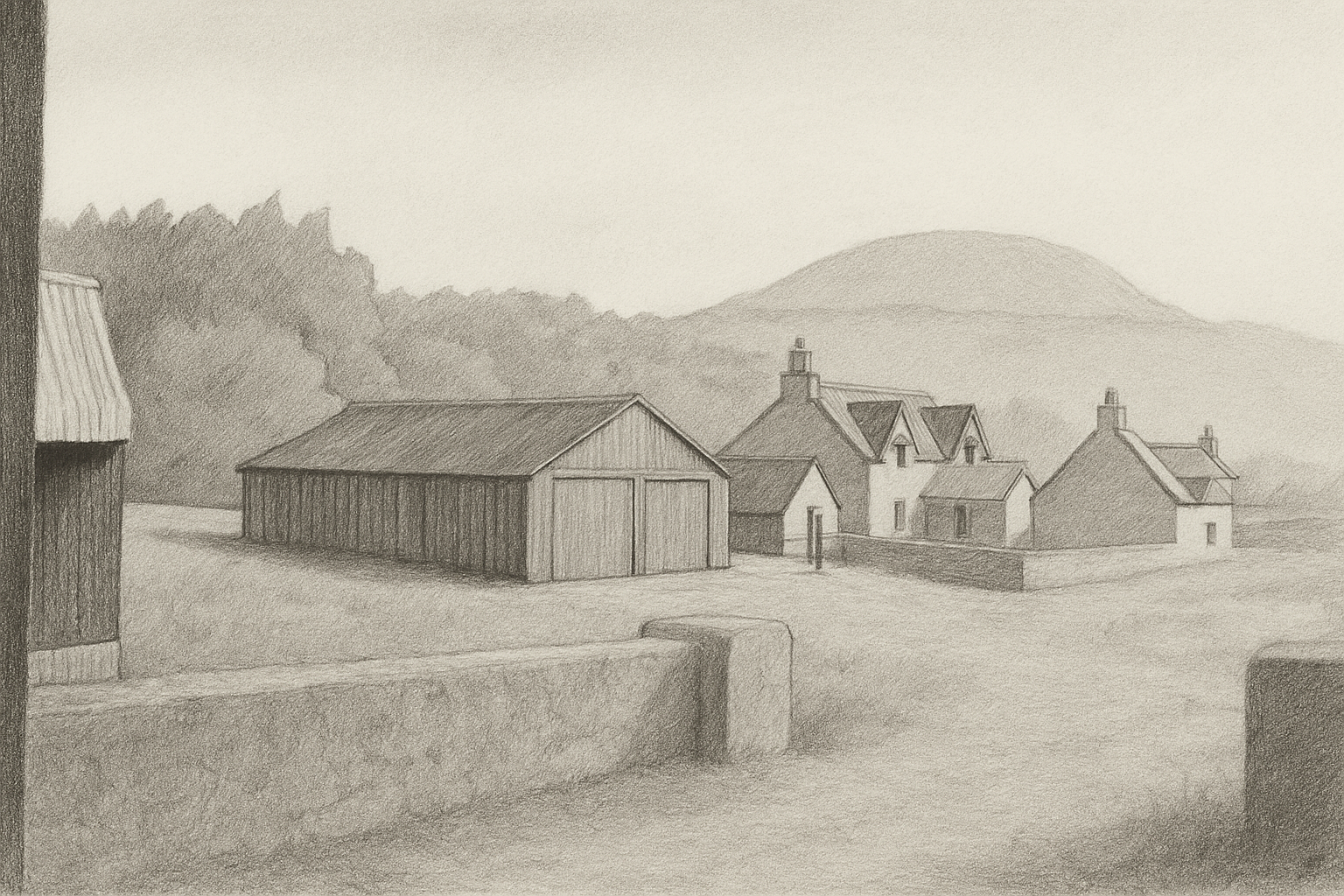ground floor stone upper floor dark green horizontal wooden facade yellow windows