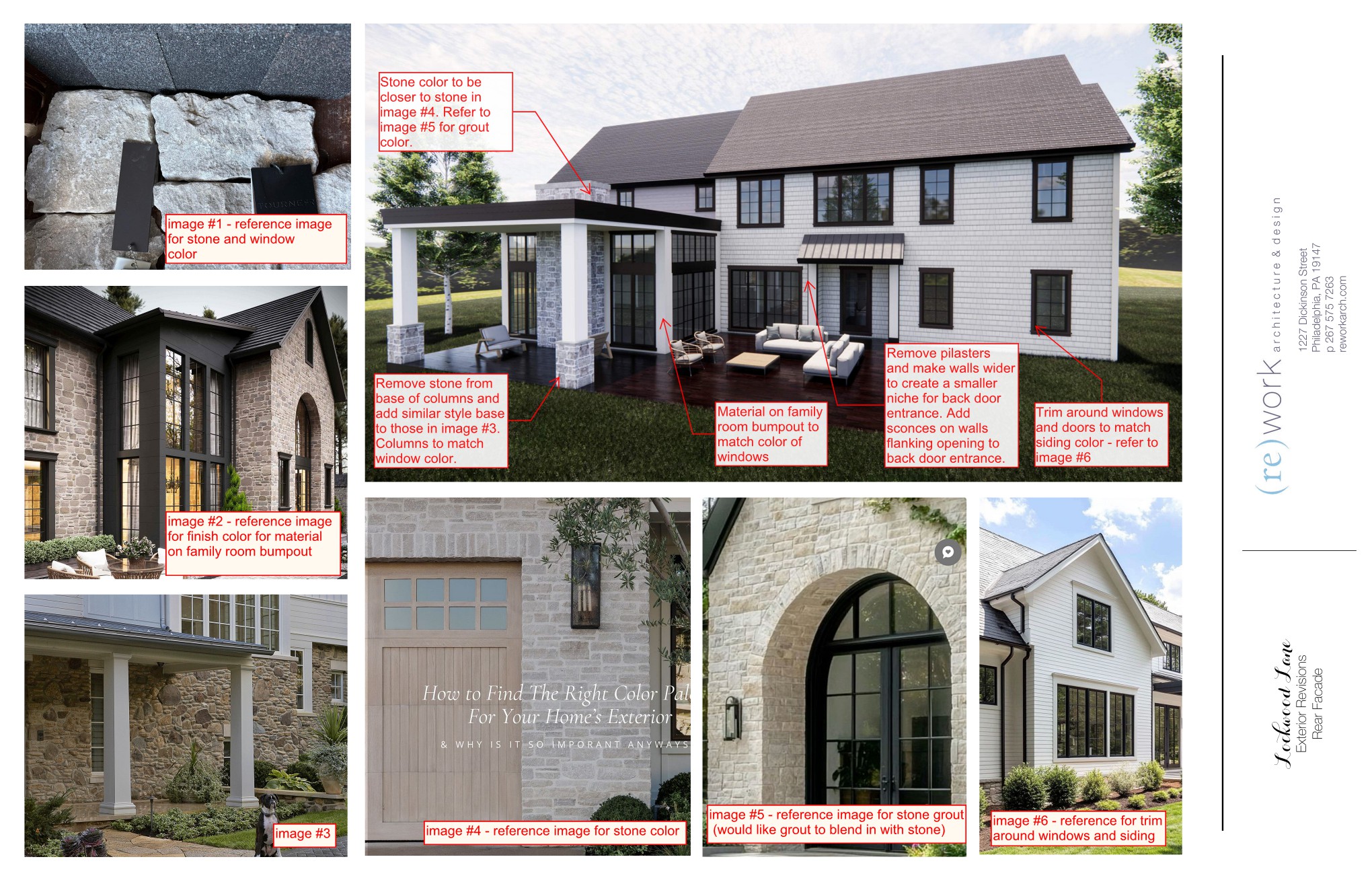 please use the prompts in red to give me a photo realistic rendering of the back of the home image on the top right use the prompts in red to make the changes