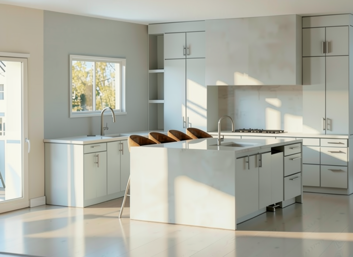 keep everything the exacts same do not change anything color texture or materials only change the window wall to match then island countertop it s a backsplash that goes all the way up the wall use the same exact texture and material