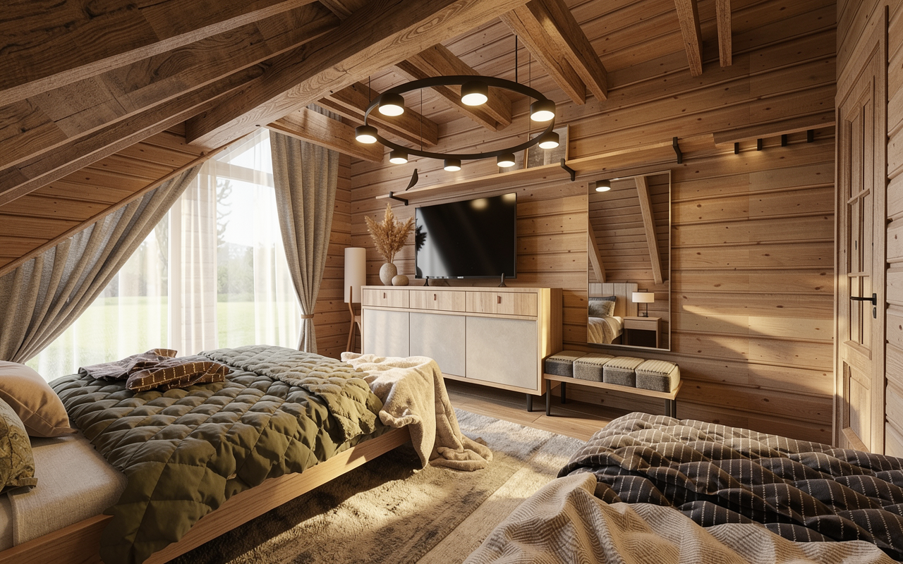 photorealistic architectural visualization of a uk countryside family home soft diffused summer golden hour lighting under light high cloud warm but neutral color grading no dramatic contrast slightly elevated camera at approximately 3 metres height 50mm lens equivalent front three quarter perspective natural architectural photography composition traditional red clay single pantile roof with subtle weathering warm red brickwork with realistic mortar joints light grey painted aluminium windows and doors with soft reflections realistic residential landscaping manicured lawn mixed perennial planting shrubs and grasses timber fencing natural garden edges no exotic plants no palm trees no modern hardscape ultra realistic materials accurate scale high detail editorial architectural photography no people no dramatic sky no oversaturation