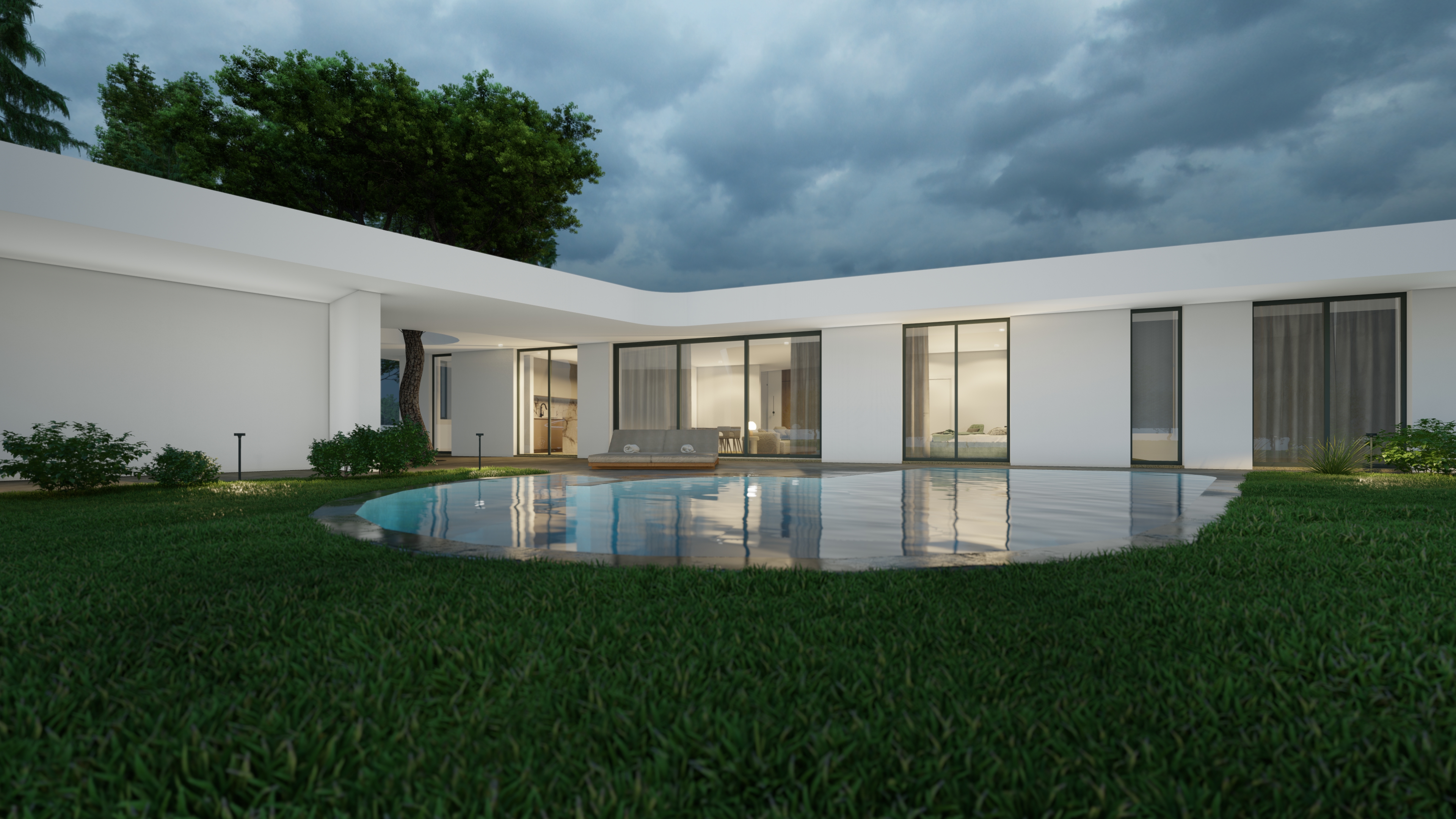 improve the image to look like a realistic sunny day add natural sunlight realistic sky brightness coherent soft shadows accurate reflections and balanced exposure make the image look more photorealistic with cleaner details natural contrast and reduced noise while preserving the original composition and architecture