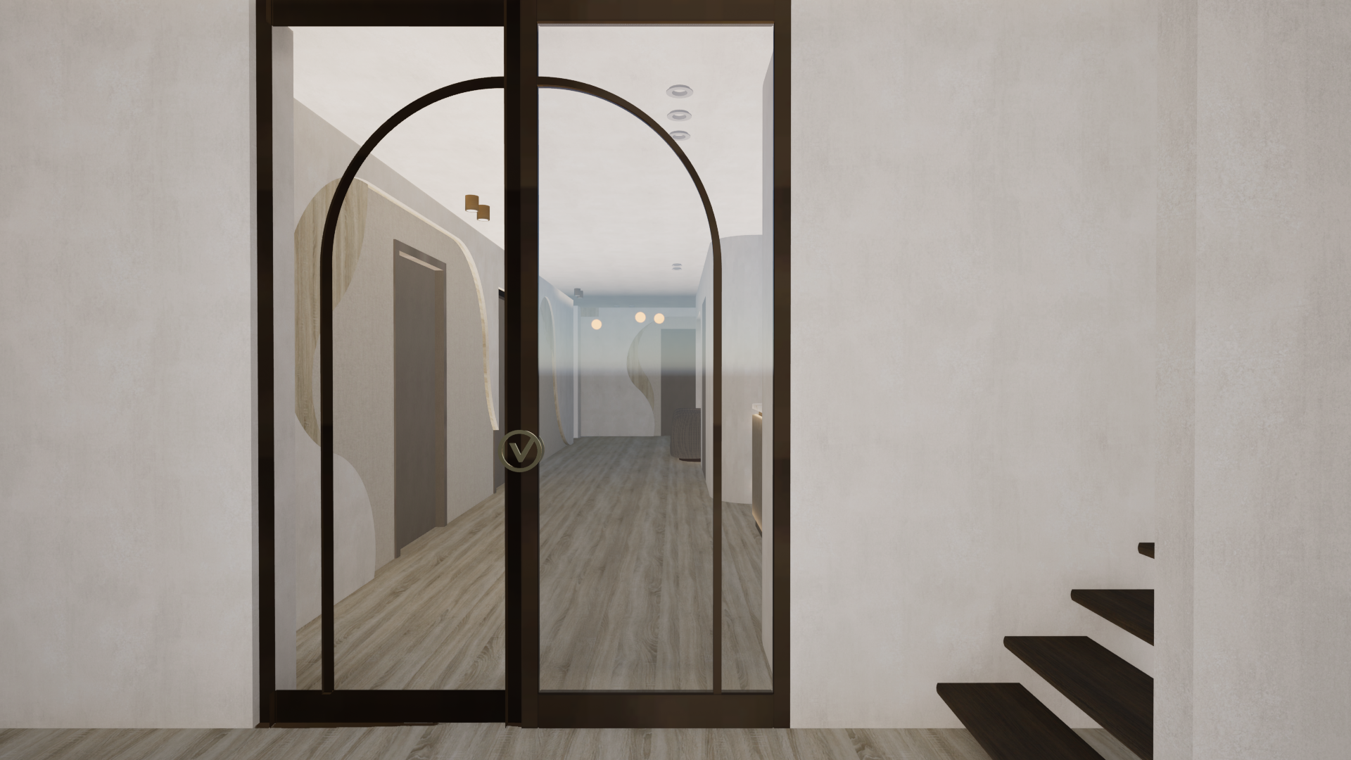 improve bronze metal texture of door add led lights in the curved wall elements in the background enhance overall textures