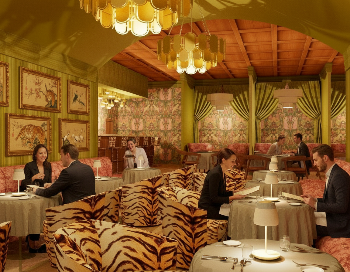 take out the woman sitting alone and add someone standing at the back bar