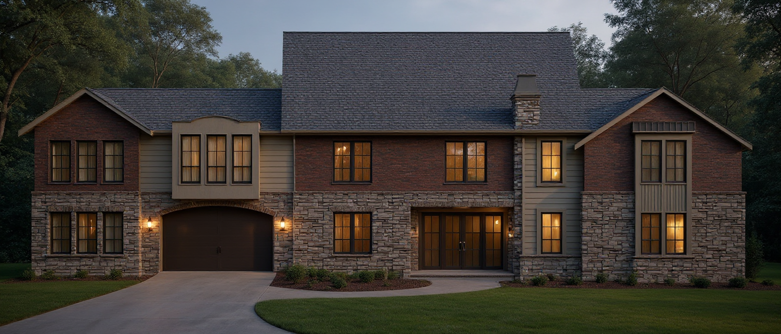 grainy watercolor render of timber frame building with reclaimed wood siding and stone wainscot watercolor trees and urban environment in the background road in the foreground architecture