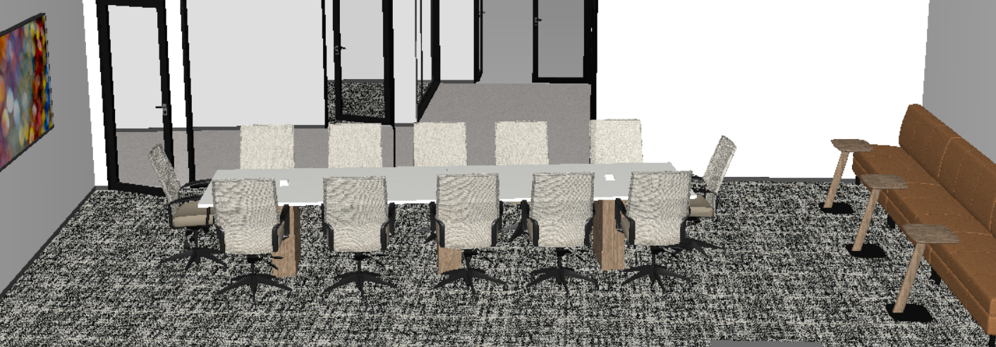 keep all furniture and materials the same add artwork add decor on the table add someone walking in the hallway simple artwork abstract more realistic