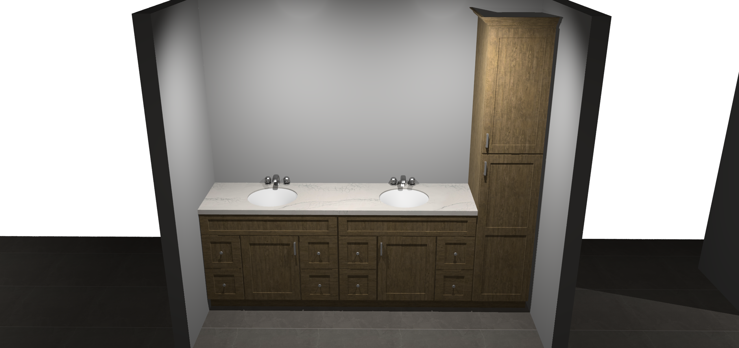 do not alter structure add wall mirror add nice lighting do not change cabinet color nice bathroom with quartz countertop