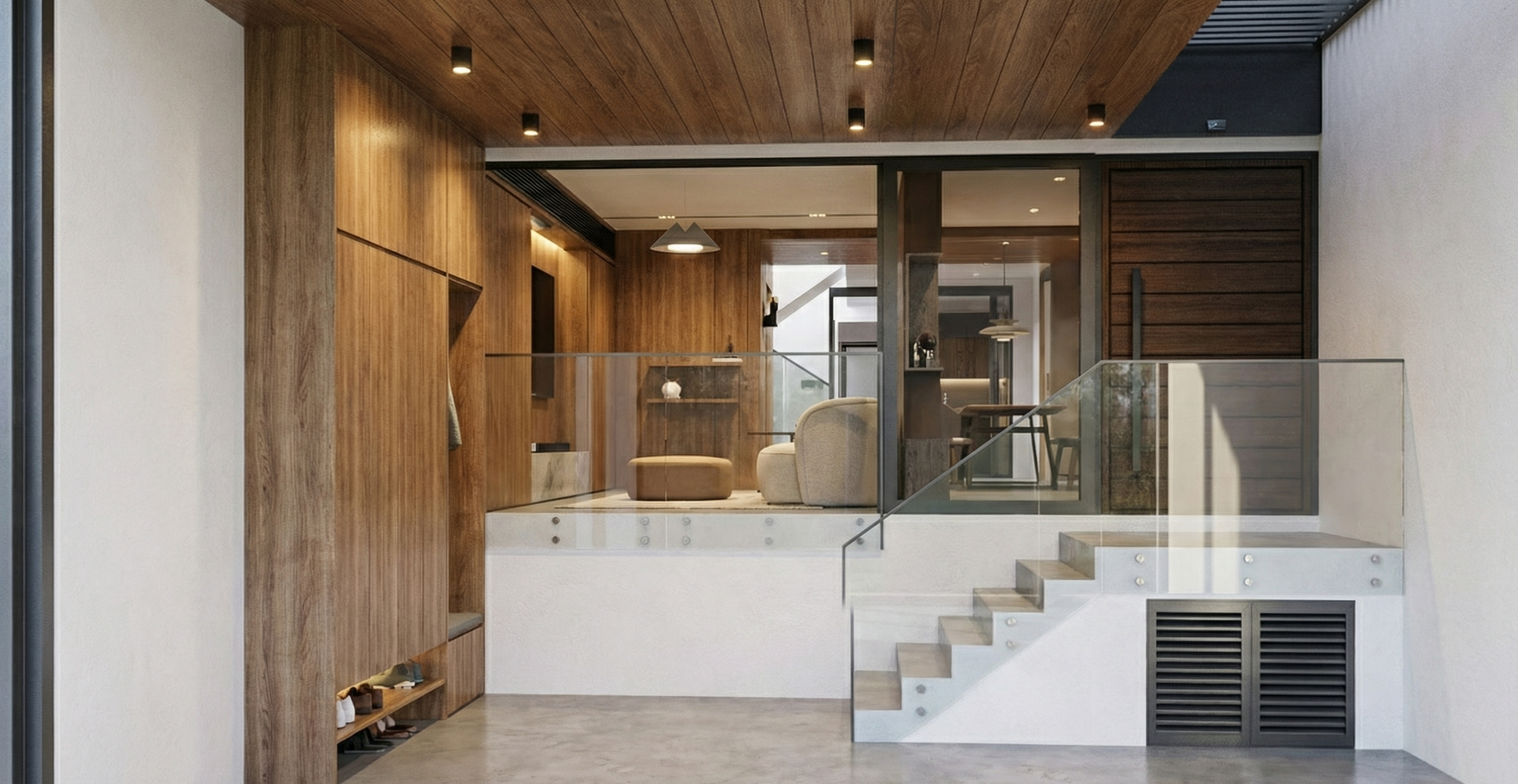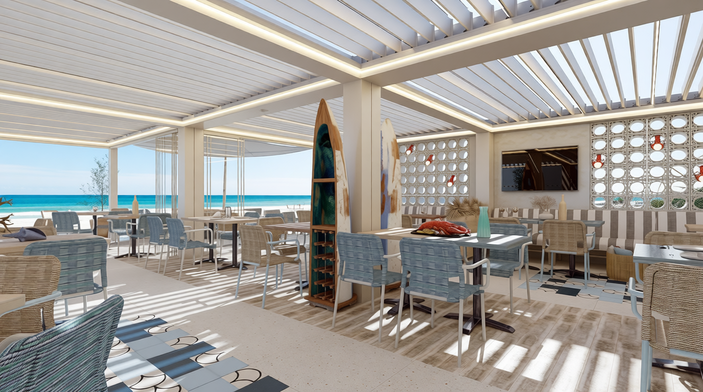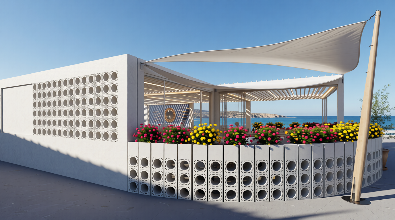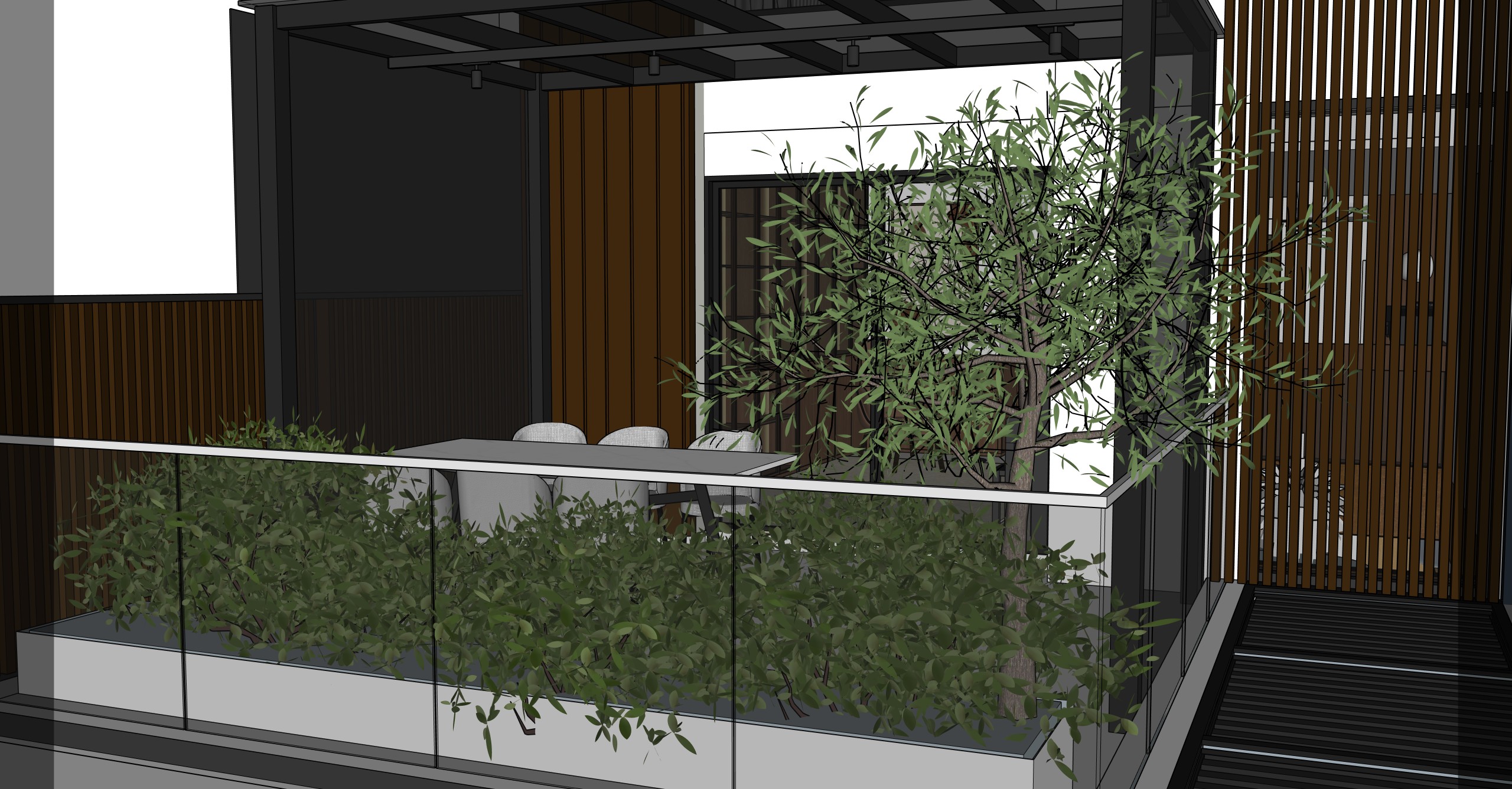there is a translucent black screen on the sides and the ceiling of the balcony trellis