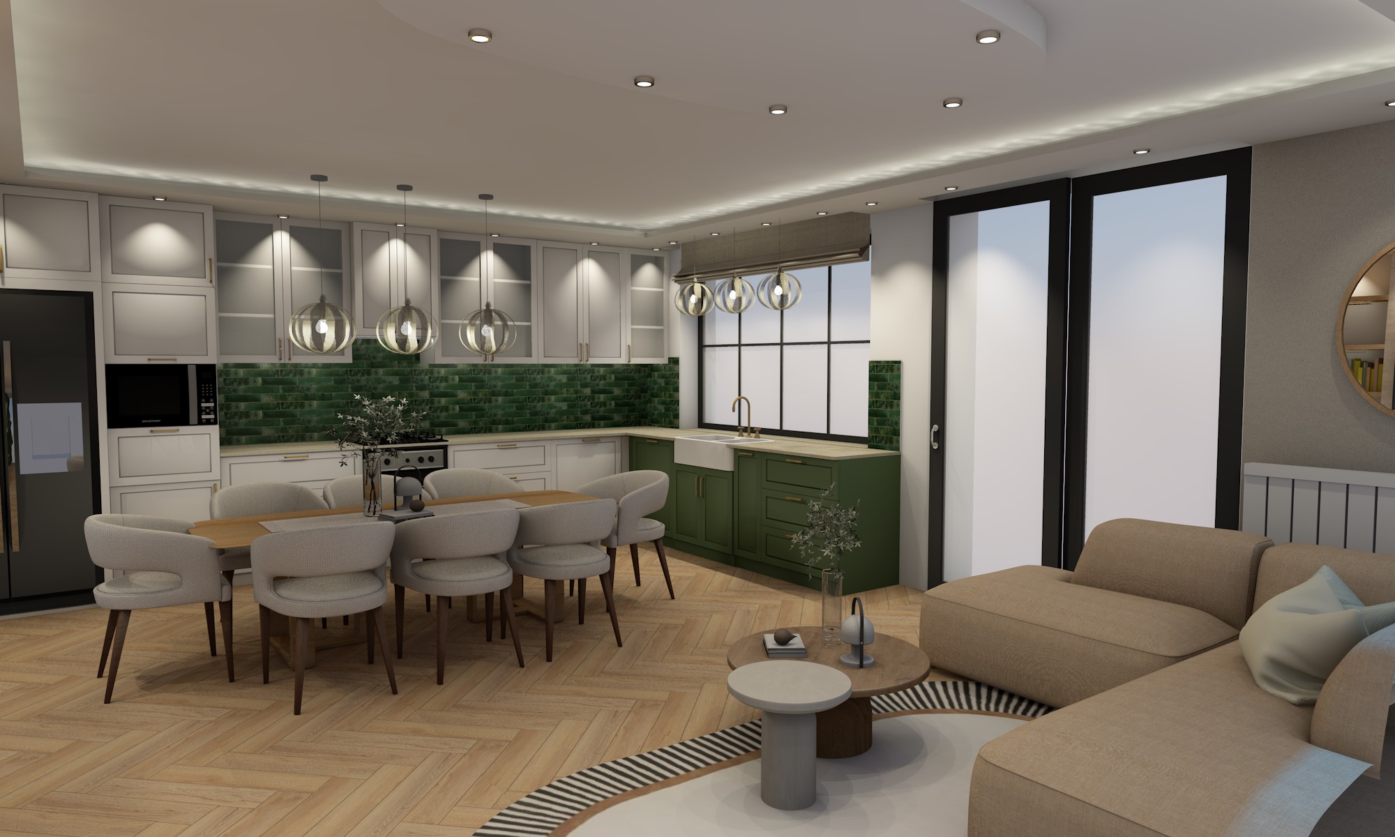 k sz ts professzion lis l tv nytervet f nyekkel vegezett ajt k m g tt t ny rokkal poharakkal k nyvekkel adj hozz term szetes napf nyt a jobb oldali ablak fel l l tsz djon a kert az ablakon t a magas teraszajt el helyezz tl tsz f gg nyt k t oldal ra h zva a k p bal oldal n ne l tsz djon b tor a z ld konyhapult feletti ablakn l csak rol legyen