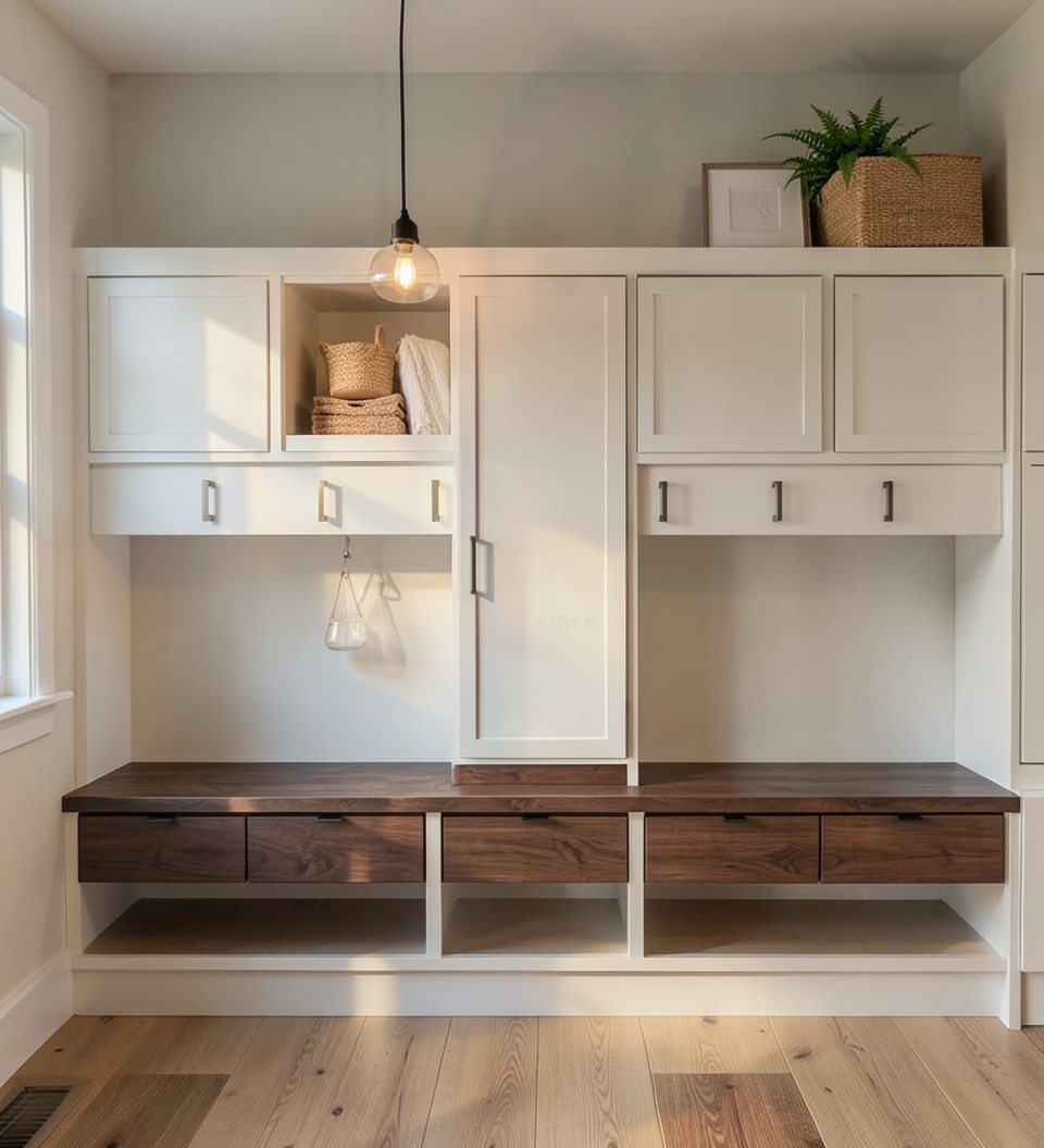 colour joinery only in dark walnut cupboard faces and calacatta viola benchtop and slapshback