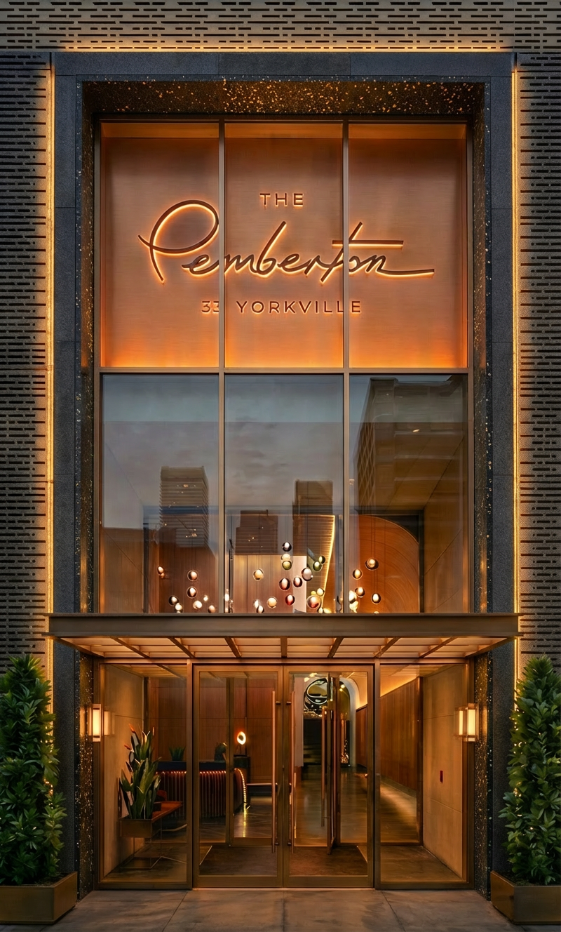architectural facade refinement preserve existing design exactly use the input image as the absolute base reference preserve the exact building design geometry proportions camera angle composition facade layout glazing signage canopy lighting mood and luxury architectural character mandatory edit only set the black terrazzo speckled stone frame surrounding the tall glazed opening back by approximately 2 to 4 inches so it reads as a recessed inner portal frame rather than being flush with the outer facade frame design intent the outer perforated facade frame must remain at the front plane the black terrazzo frame must sit slightly behind it creating a visible recessed condition with a realistic shadow gap and clear depth separation between the outer facade plane and the inner terrazzo surround important keep the same terrazzo material color texture finish sparkle and proportions keep the same overall frame dimensions and shape do not redesign the opening do not modify the mullion layout do not move or redesign the signage do not change the canopy geometry do not alter the facade cladding pattern only adjust the depth position of the black terrazzo frame so it is no longer flush required visual result the black terrazzo portal frame must read as a premium recessed architectural surround add realistic perimeter shadows and depth shading where the frame is pushed inward make the layered facade construction legible and believable the recessed condition should be subtle elegant and architecturally correct not exaggerated strict preservation rules preserve the exact facade design preserve the exact symmetry and vertical composition preserve the exact sign text the pemberton 32 yorkville preserve the existing warm luxury lighting ambiance preserve all glazing reflections lobby visibility pendant lights entry doors wall sconces planters and sidewalk preserve the exact framing and camera perspective do not crop differently do not add or remove architectural elements do not restyle the project material and lighting control maintain the polished dark terrazzo stone appearance with fine reflective aggregate maintain the warm evening lighting tone keep highlights controlled and realistic keep glass reflections refined and natural preserve the premium real estate marketing visualization quality image enhancement upscale and refine to ultra high quality 4k 8k output improve clarity sharpness edge definition and material realism remove blur softness noise compression artifacts and muddy details enhance stone metal glass and interior visibility while preserving realism keep the image photorealistic elegant and magazine quality negative constraints no redesign no geometry change no composition change no new facade elements no change to signage design or placement no change to mullion spacing no change to lighting concept no stylized interpretation no fake hdr effect no excessive sharpening no exaggerated recess depth no flush terrazzo frame final objective generate the same exact architectural image with the same luxury appearance and composition but push the black terrazzo frame slightly inward so it reads as a recessed inner portal with realistic shadow depth while preserving every other aspect of the facade and enhancing the final image to high end 4k 8k photorealistic quality do not redesign do not change geometry do not change composition use the uploaded image as the exact base image and preserve everything exactly as shown facade design proportions glazing signage lighting materials camera angle symmetry canopy lobby view planters and reflections only one geometric adjustment is allowed push the black terrazzo speckled stone surround around the large vertical window opening backward by approximately 2 4 inches so it is recessed behind the outer facade frame instead of being flush with it this black frame must remain same material same color same texture same thickness look same shape same size only change its depth position the outer perforated facade and exterior frame must remain at the front plane the terrazzo surround must become a secondary inner layer slightly set back with a clear but elegant shadow reveal this should look like a realistic premium deep set portal detail not a redesign absolute preservation keep the sign exactly as is keep window divisions exactly as is keep canopy exactly as is keep all entrance doors exactly as is keep lighting mood exactly as is keep interior lobby elements exactly as is keep reflections and exposure consistent keep the entire image centered and symmetrical keep the same framing and perspective keep the same architectural identity rendering quality enhance to ultra detailed 4k 8k photorealistic quality increase sharpness material fidelity edge precision glass realism and shadow definition remove blur noise artifacting and softness preserve a refined luxury residential marketing image aesthetic do not redesign facade change sign change window layout change composition change lighting scheme change materials stylize overprocess leave the terrazzo frame flush with the stone frame goal same exact image but with the black terrazzo frame subtly recessed inward with believable shadow depth and premium architectural detailing