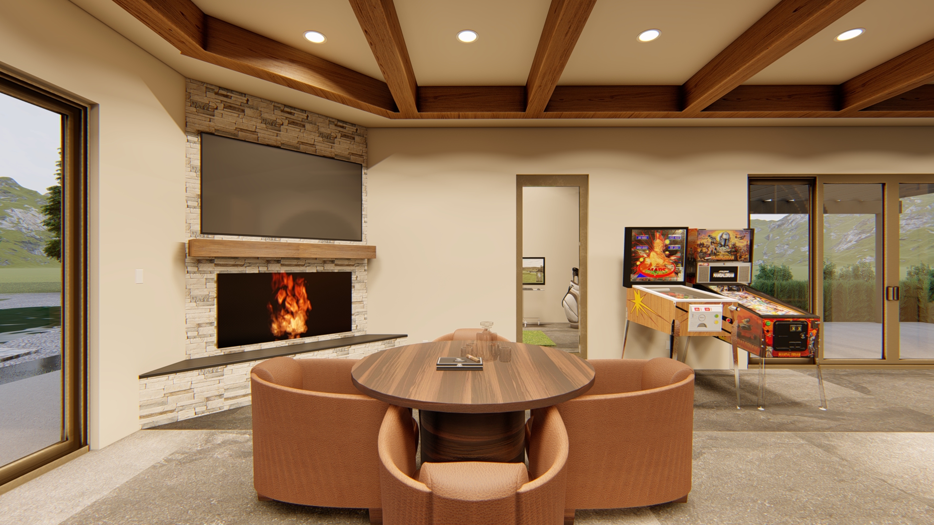 leather in the chairs are dark brown and the floor is grey almost back