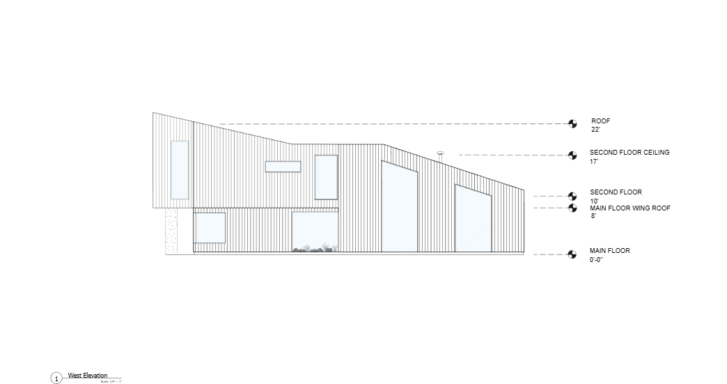 keep this drawing the exact same just add wood siding to the main level and add black metal to the shed roofs