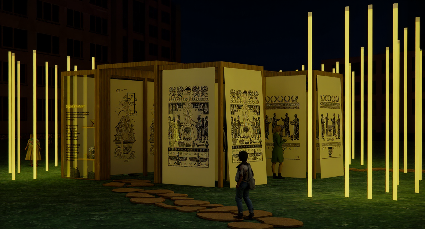 re render this exact perspective but correct the lens distortion by using a 35mm equivalent focal length keep all geometry identical improve the sky with a warm sunset sky that has soft clouds and golden hour gradients increase global illumination on the brick fa ade so the left side feels less flat maintain the bistro interior lighting exactly as shown but add subtle warm exterior bounce light on the edges of window frames enhance sidewalk and street texture on the left to add depth without changing geometry keep all people placement the same but soften shadows and add warm rim light do not alter building proportions window layout or alley geometry keep alley perspective exactly as rendered only adjust lighting and camera lens overall goal more balanced sky more realistic perspective warmer and more lively atmosphere