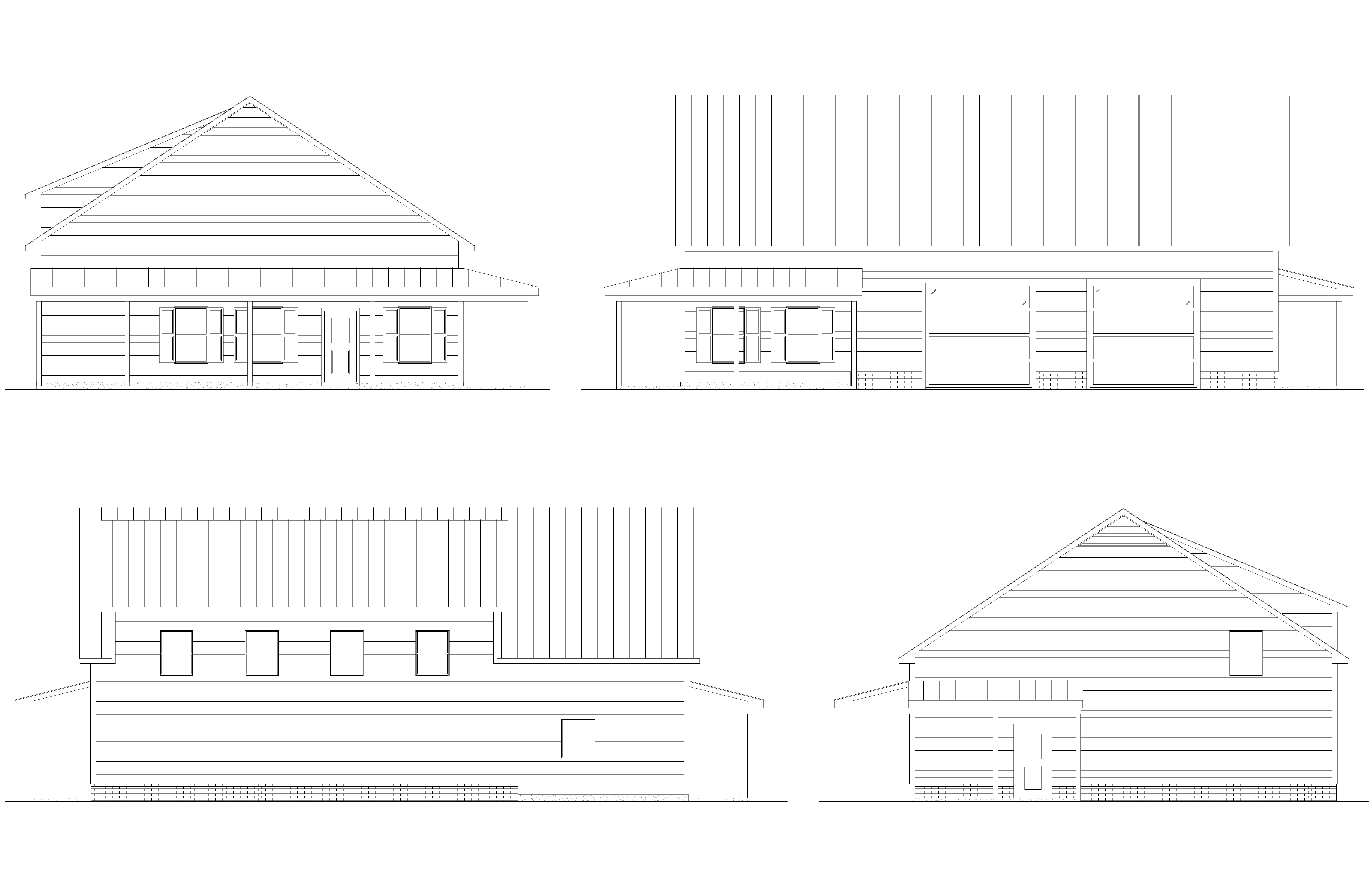 render a modern garage inspired by architectural blueprints featuring a sleek sloped roof in matte charcoal gray the facade is a mix of light and medium gray horizontal siding accentuate the windows and doors with crisp white frames add a cozy wooden porch with a subtle warm brown finish include vibrant greenery with lush trees and shrubs around the house set the scene in a serene morning atmosphere with soft sunlight casting gentle shadows the sky is a clear tranquil blue creating a peaceful and inviting ambiance