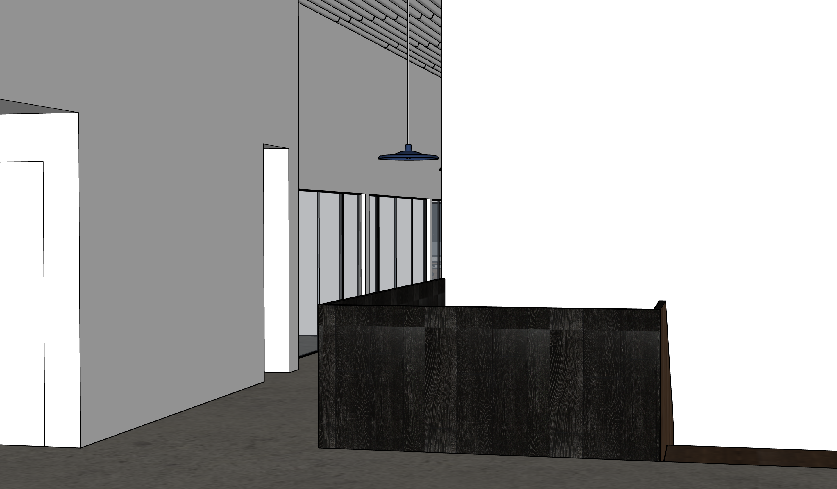 the walls are white keep the finishes the same as shown in the image do not add architectural elements the pendant light fixture is navy blue