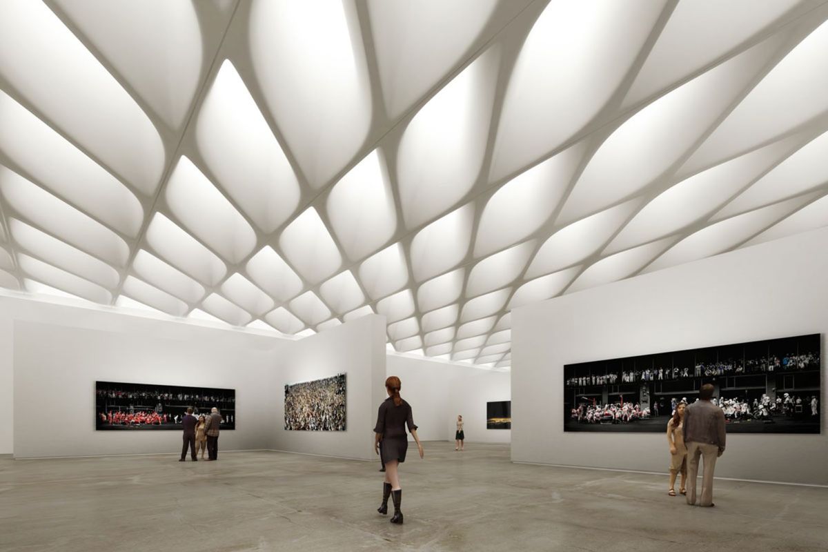 a photo of a minimalistic pool front view pool bowl exactly in the center relaxation areas with sofas and armchairs architectural ceilings and columns wide angle architectural photography