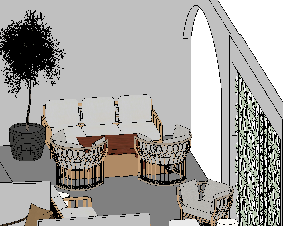 mediterranean revival close up shot outside patio add stucco to the walls on the floor add a mediterranean stone with grout use colors that coincide with spanish mediterranean style architecture