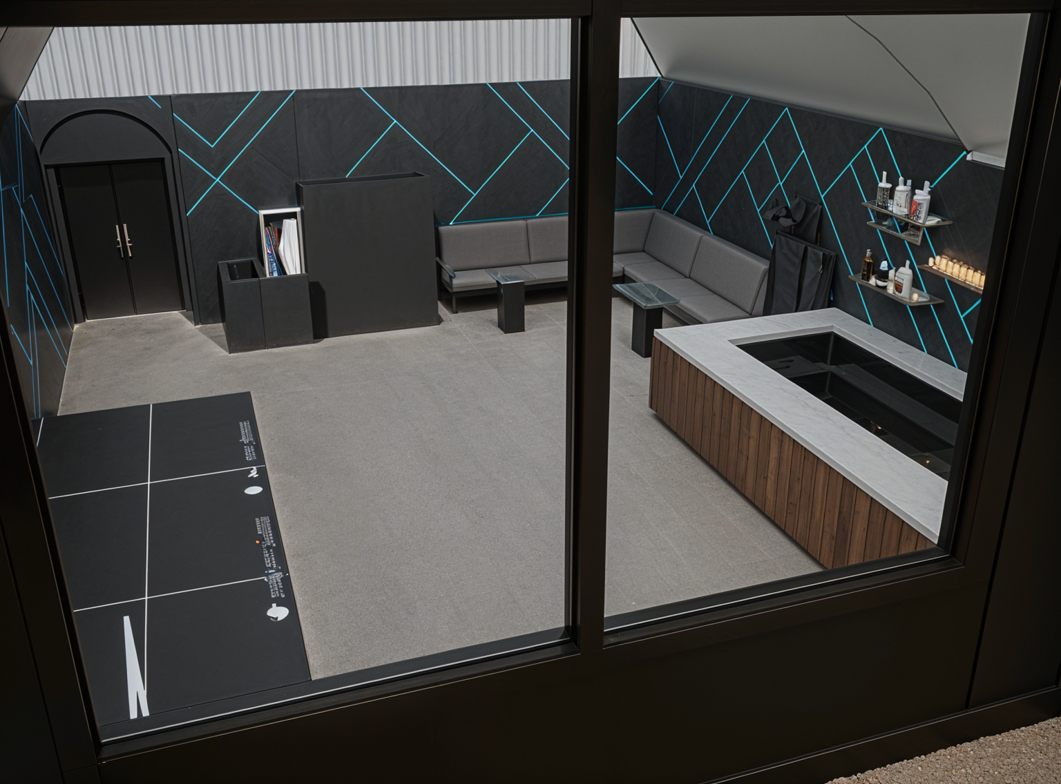 leave the same and make the wall on the left look smooth as one solid surface grey painted walls