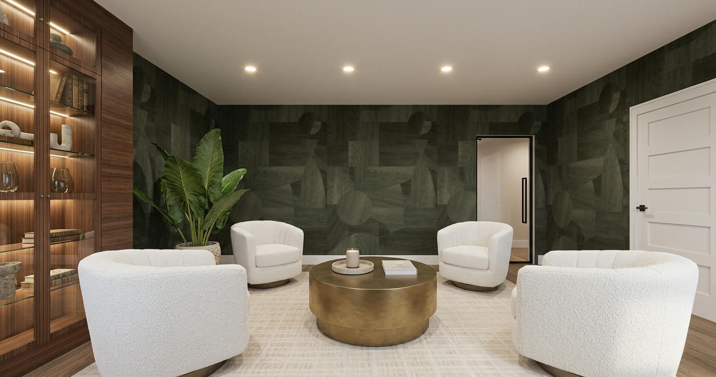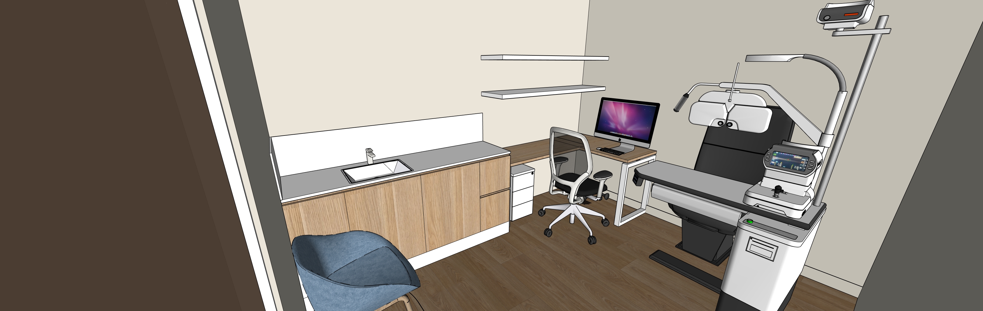 ensure the space has bright soft lighting ensure the timber elements have a soft texture ensure the plain white splash back has a minor reflection