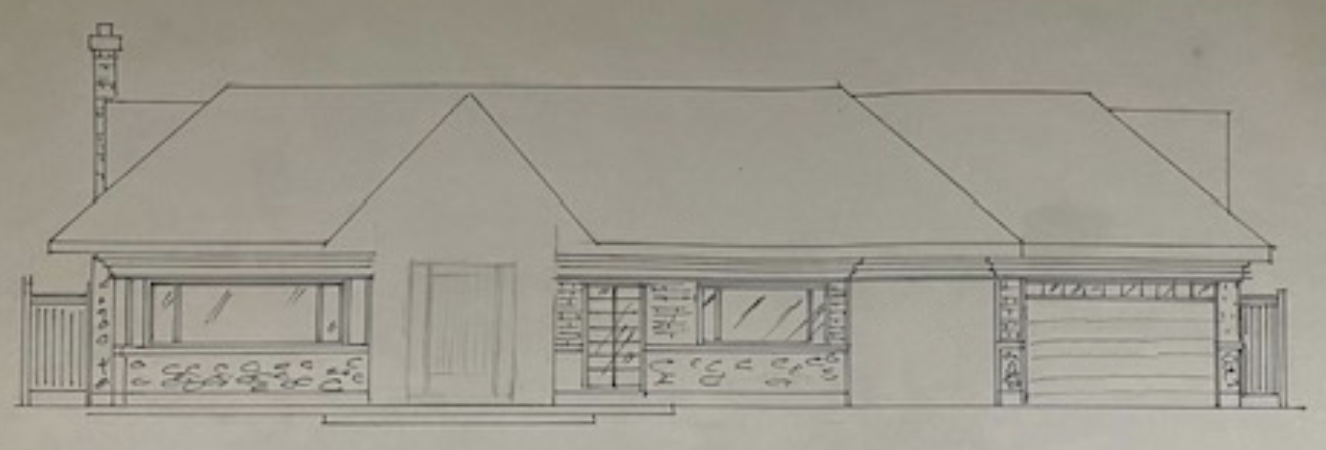 front of the house sketch to the left of the garage is a breeze through to the backyard and to the right of the front door is another door to the office