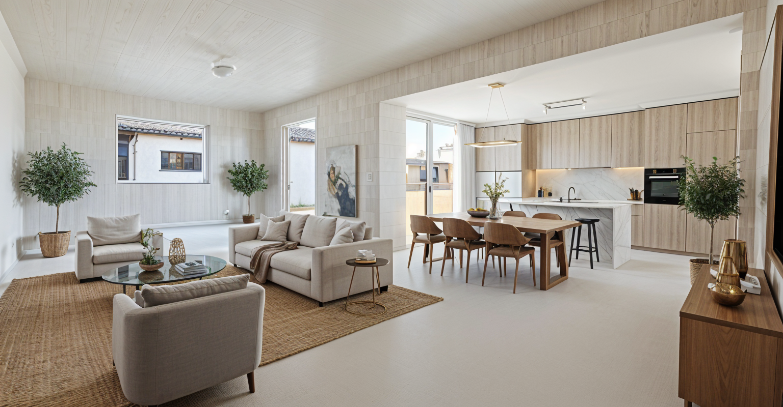 modern living room with dining room and kitchen natural shades style a touch of luxury