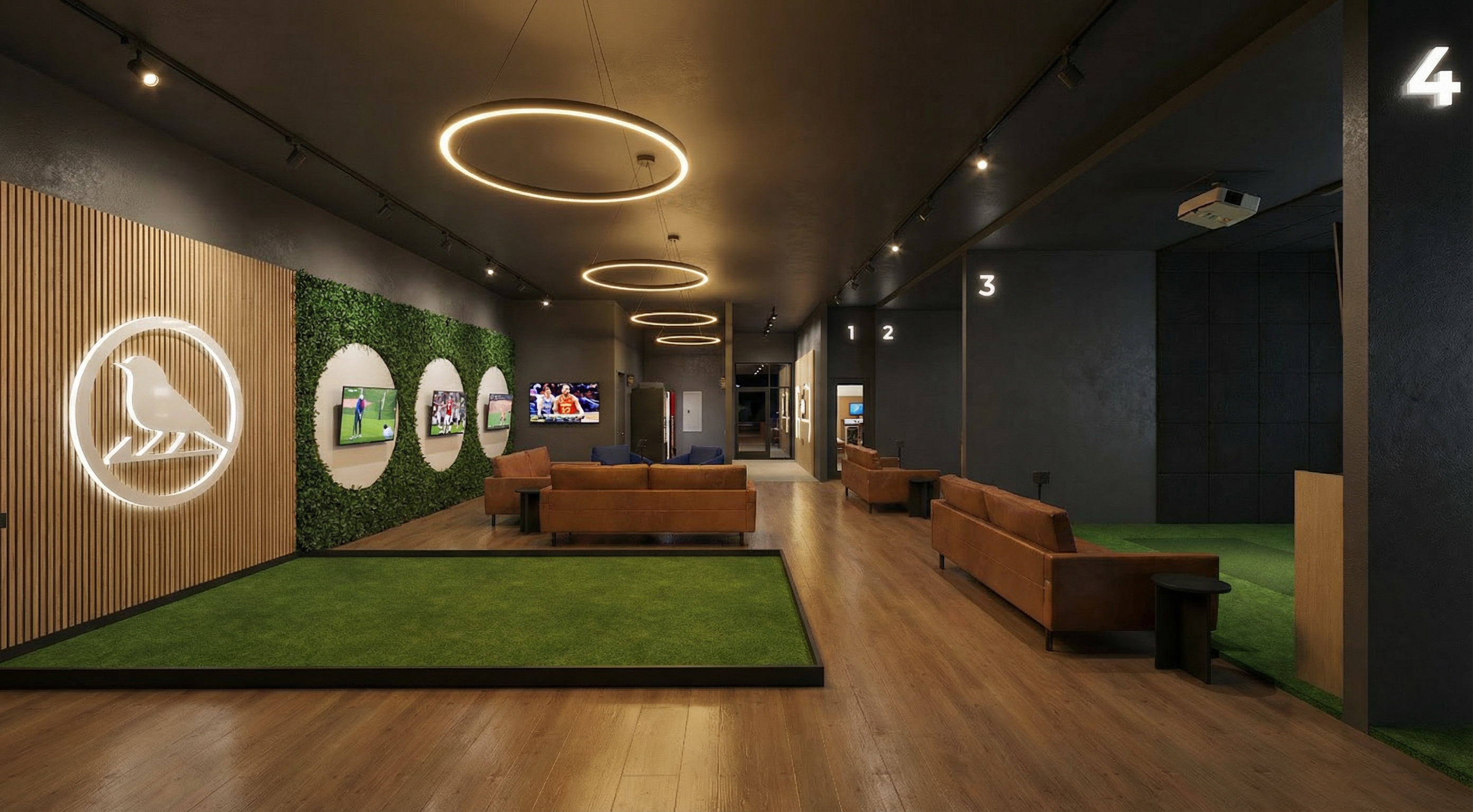 create a glazed tower the mass on the left should have expressed horizontal and vertical mullions the dark blue should have a butt joint and the main mass a curtain wall system with vertical expressed mullion
