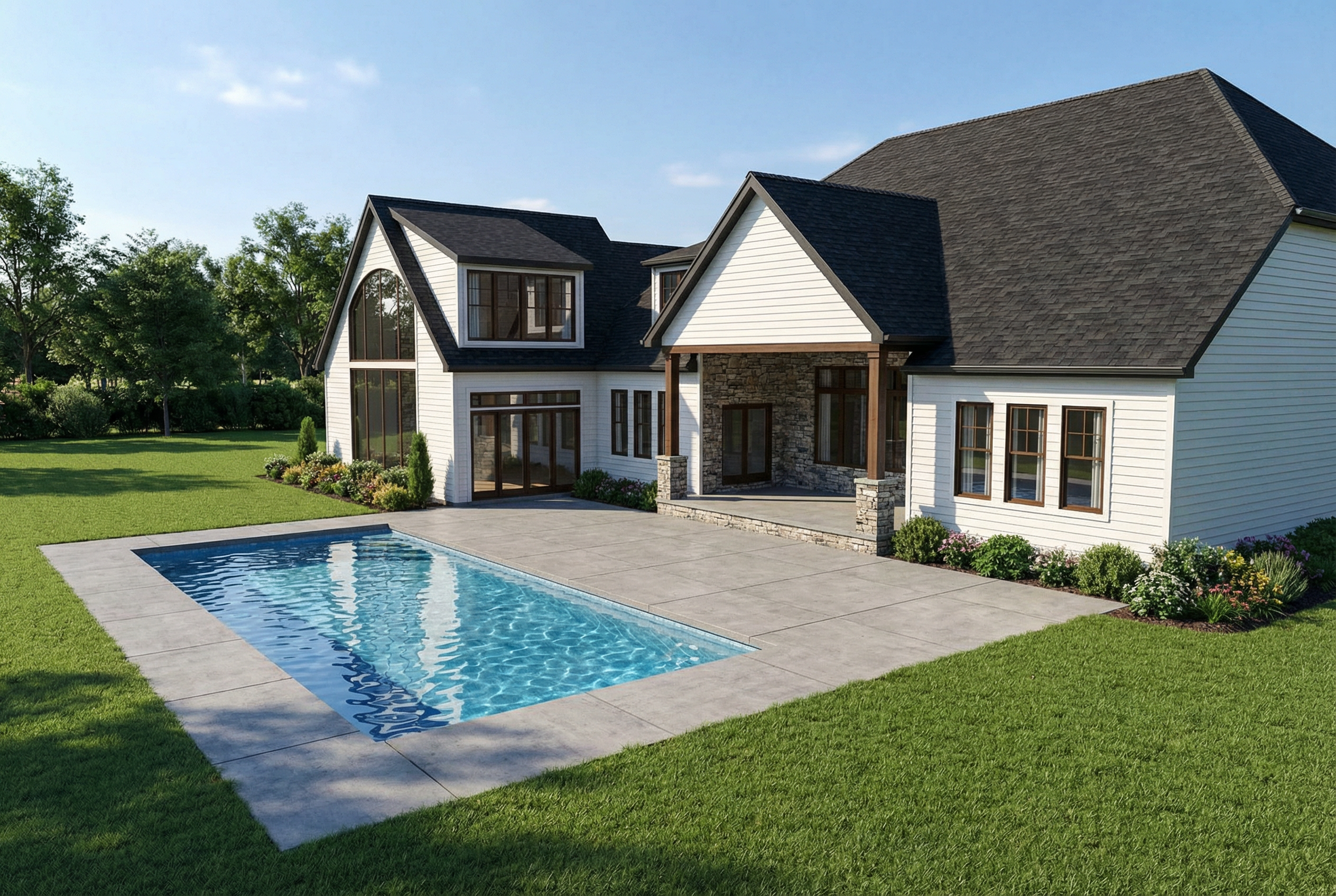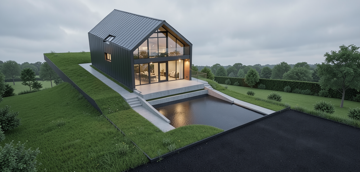 make it a modern garden with a wooden fence on the left