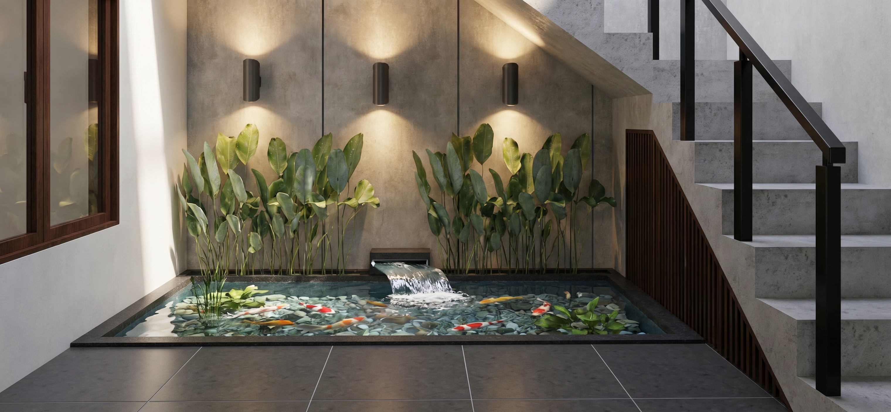 now can you give me a perspective image of the outdoor patio also showing into the main space through the outdoor bar opening which will be built in to the architecture just a rectangle sized opening above the bar looking in