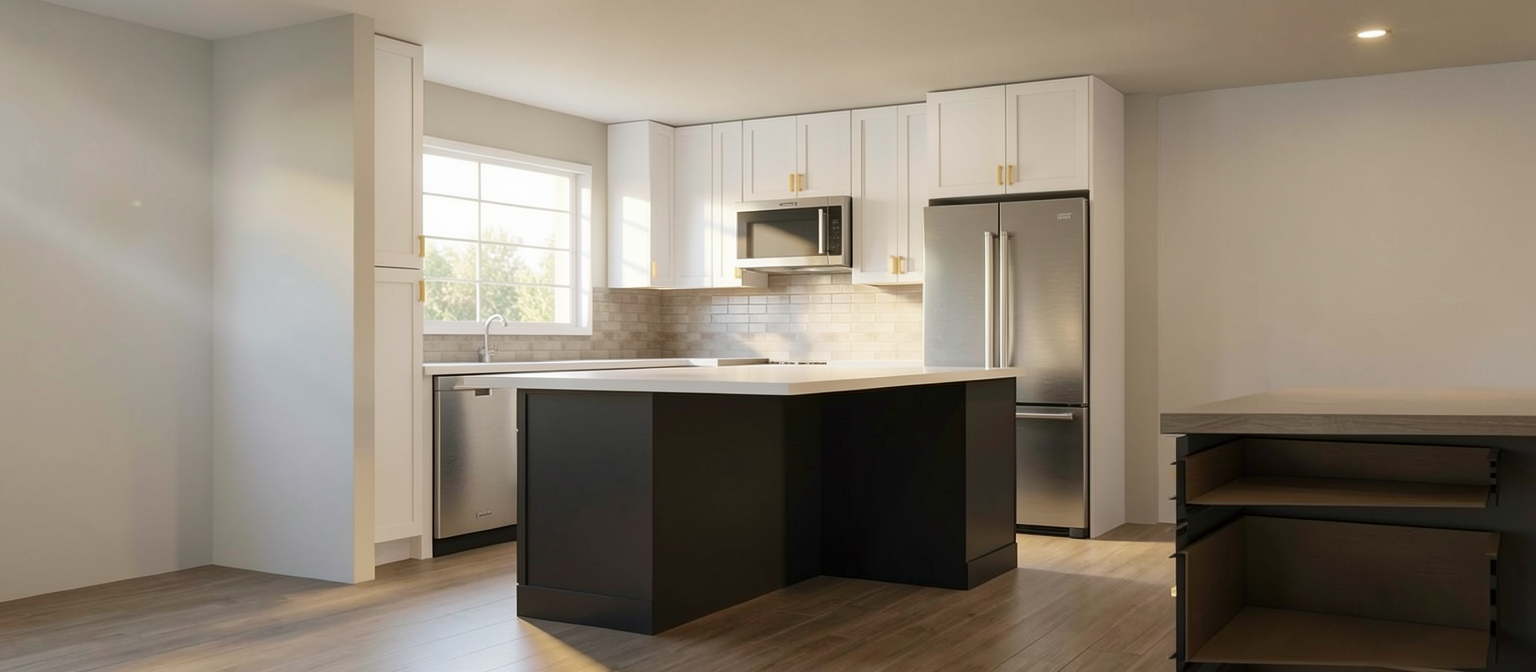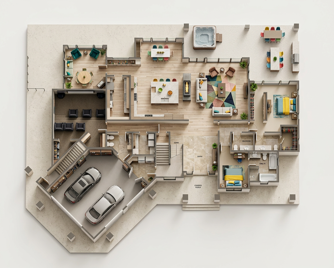 keep all the materials color and layout the same the tile is matte have vanity light lite make into photo realistic rendering