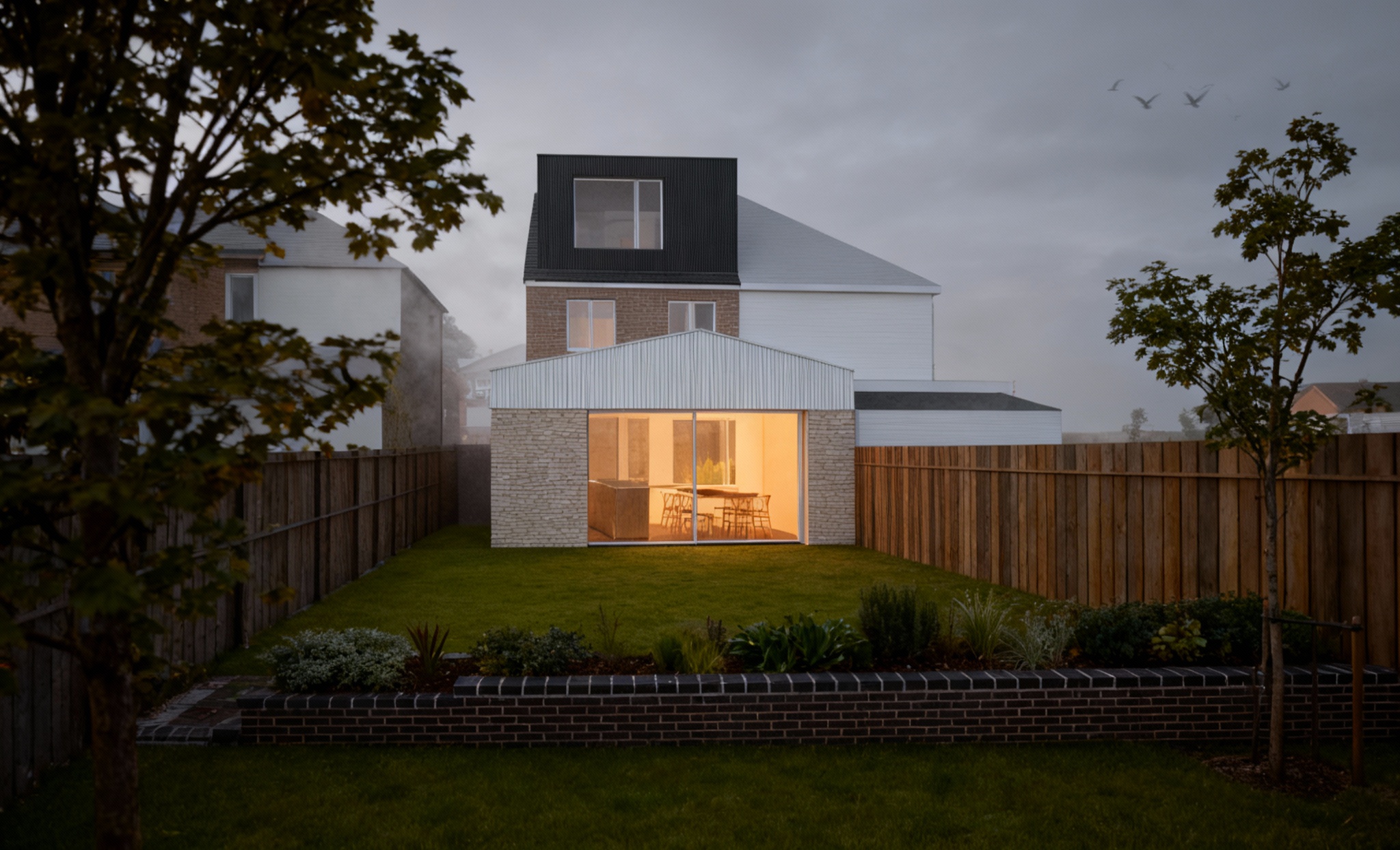 do not change the architecture form make more realistic image with people gathered inside and outside soft warm natural light