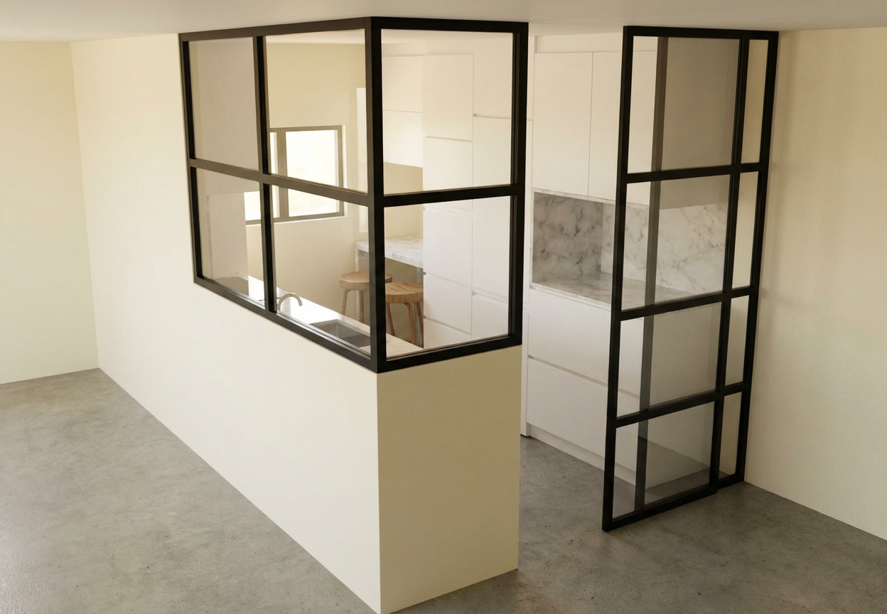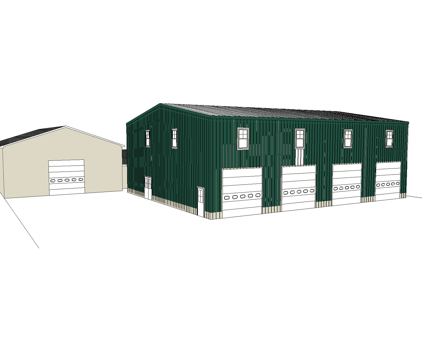 photo realistic image with a new concrete driveway in front of garage doors and concrete to the left side