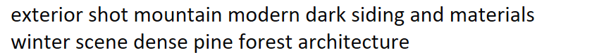 exterior shot exterior shot mountain modern dark siding and materials winter scene dense pine forest architecture