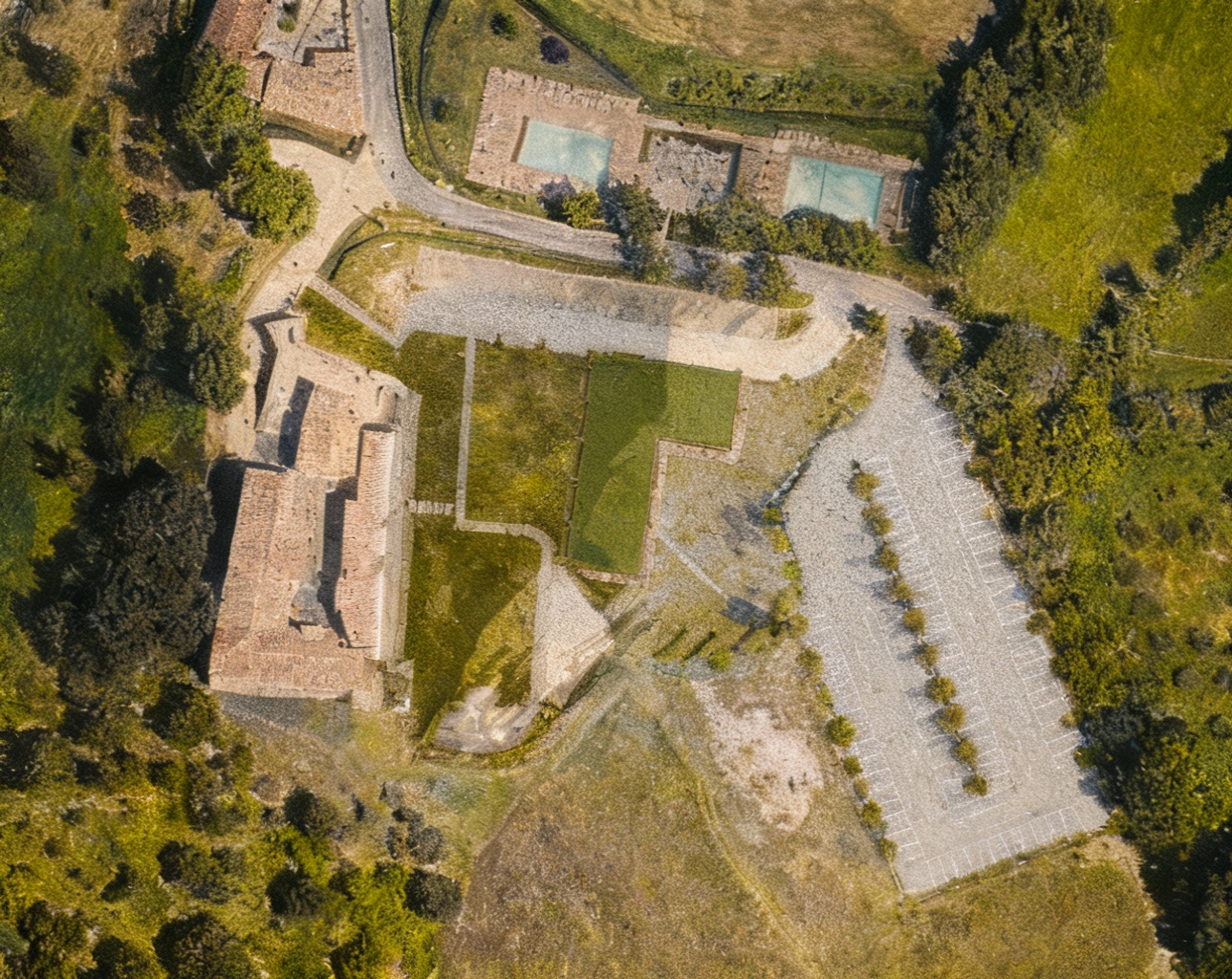 lot of reflects and sun light the sun illuminates the facade that we see some trees and a street of marseille in the backgroung facade more in the light more reflect all is painted no stone the fence call is beige like the extension more shadows of trees on the facade my point of view