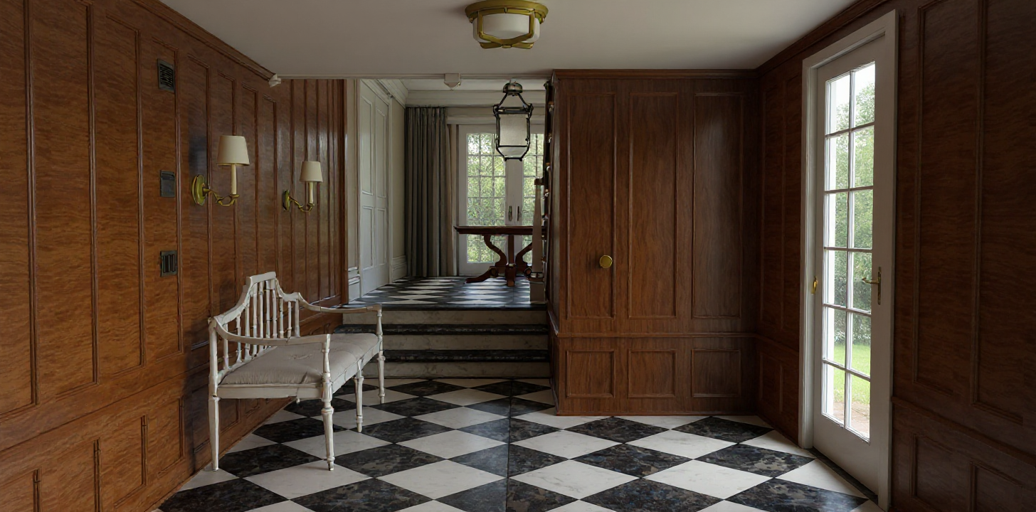 make it flat walnut and put remove all upper cabinets and backsplash make the counters arctic noir by zenith quartz