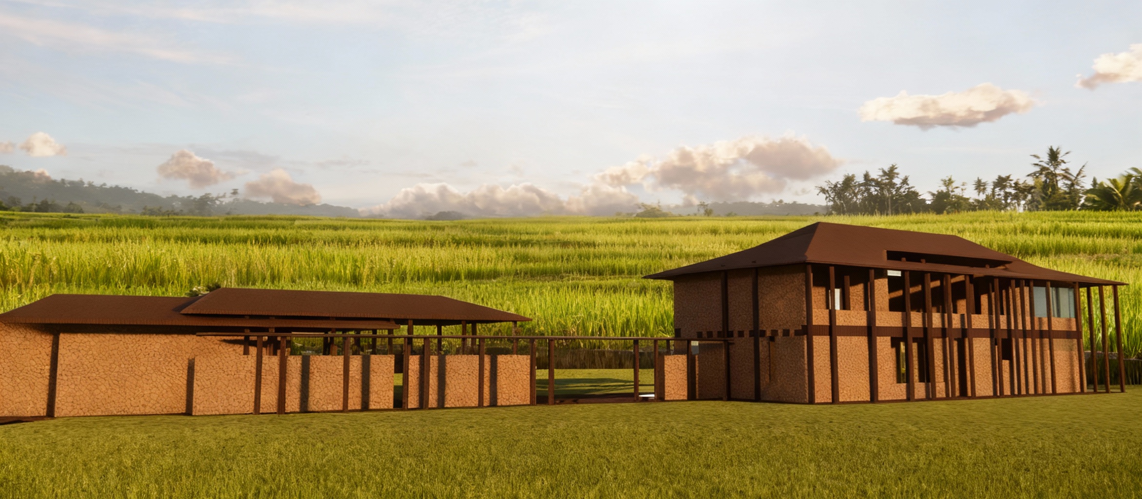 bali rice fields in foreground