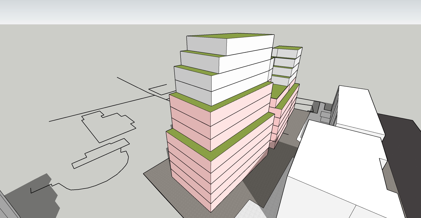 modern tiered mixed use building with large rooftop gardens and lush greenery on every terrace warm beige fa ade with rounded edges wooden window frames full height glass dense vegetation integrated into architecture urban eco district context photorealistic 8k aerial view architecture