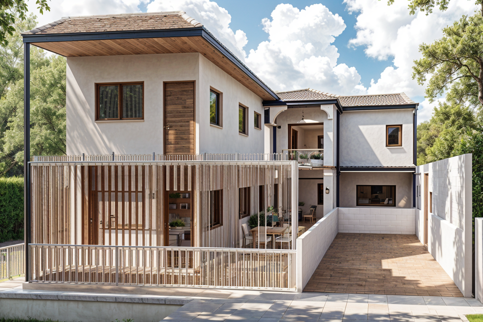 make the garage a rectangular opening and add a traditional molded wood door