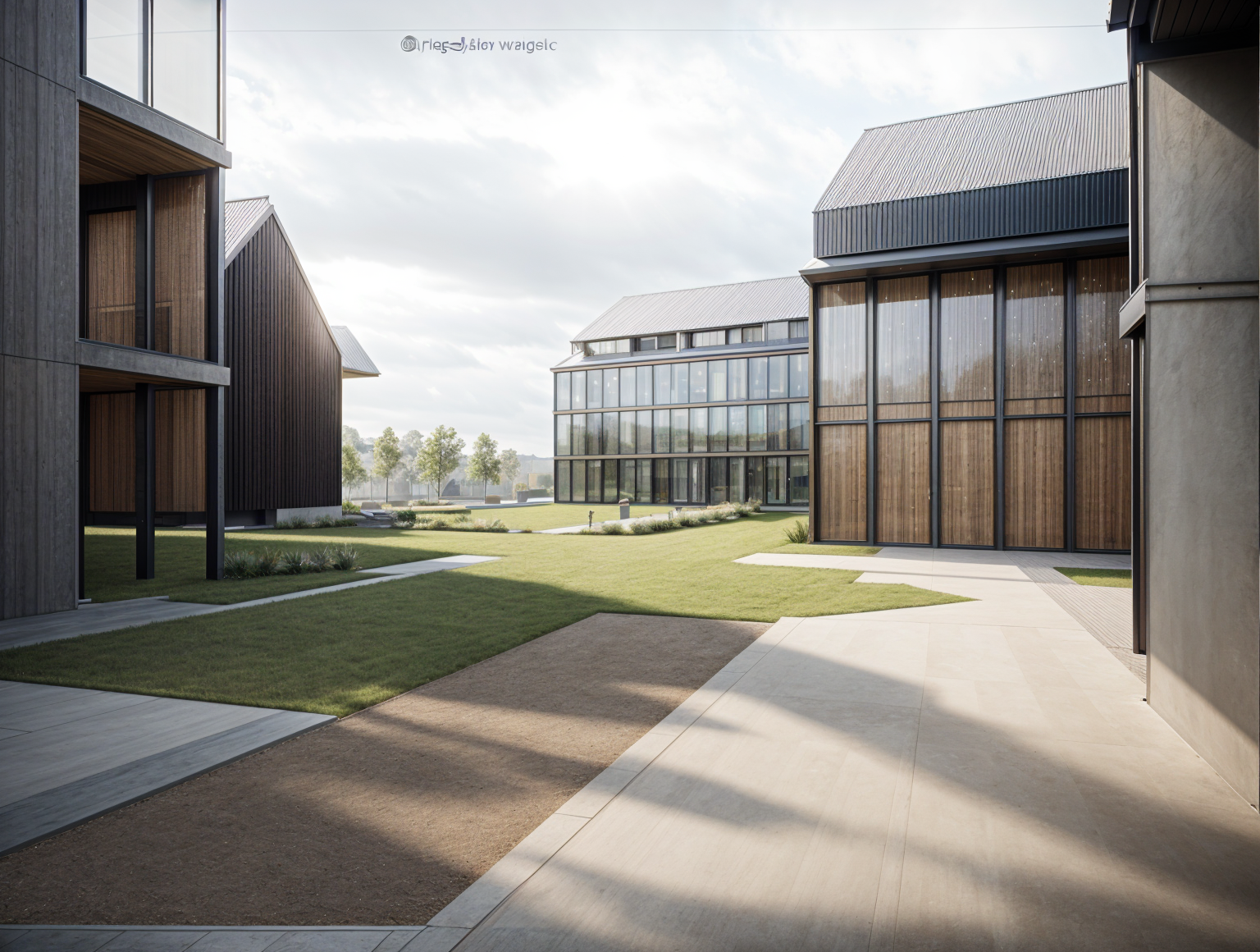 exterior shot create back round in forest and show it in day light architecture