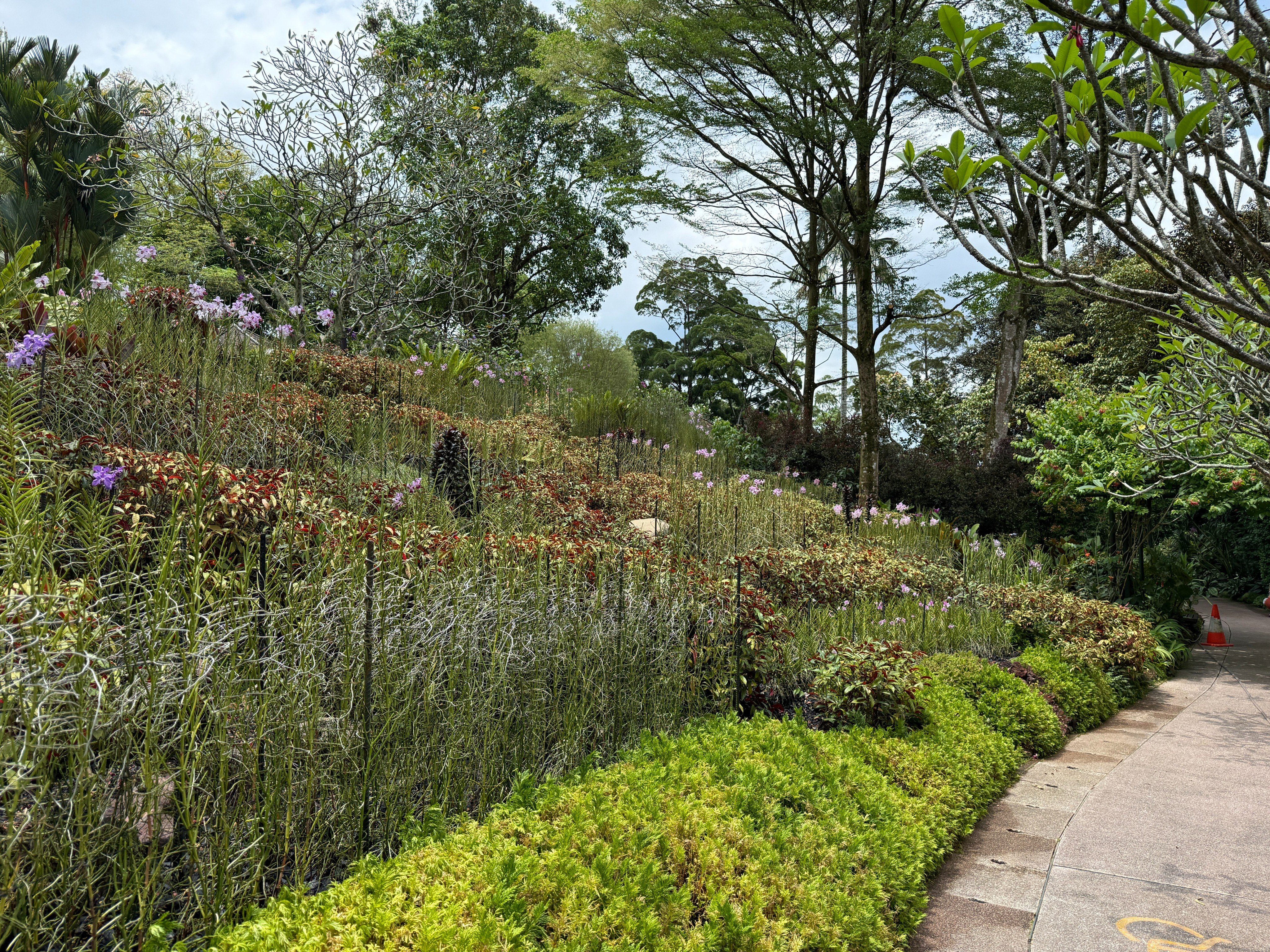 a render of a night installation at the singapore national orchid gardens numerous laser beams hit the landscaping plants in multiple directions