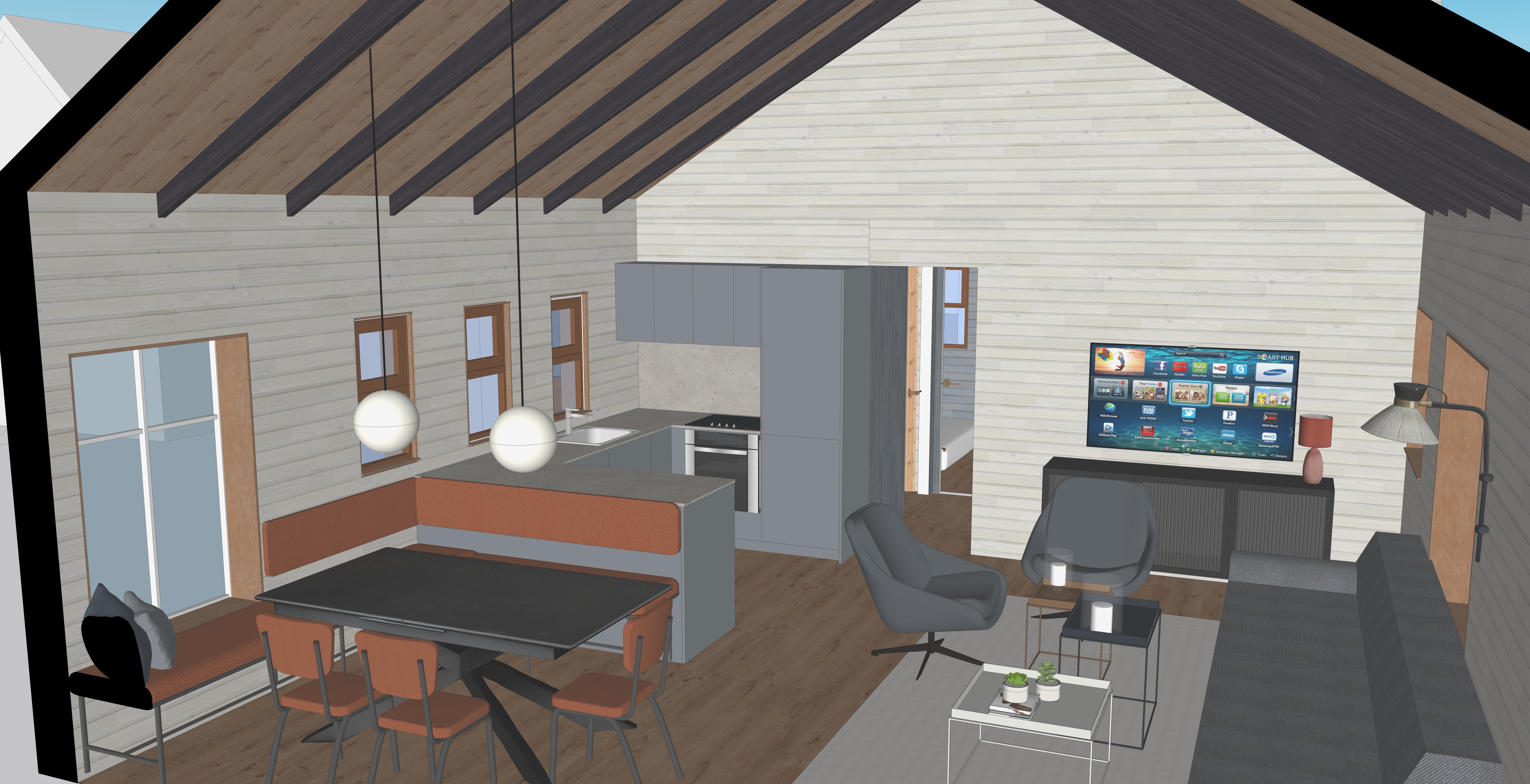add people sitting in chairs on the bench and on the sofa