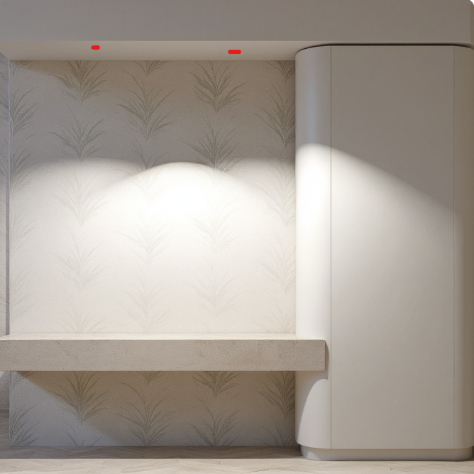 change the backwall above and below the shelf to a white vinyl weave wallpaper change the floor to polished white