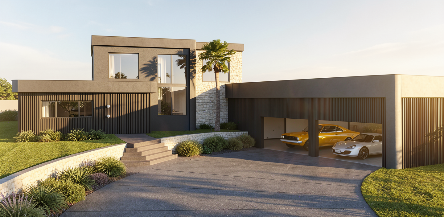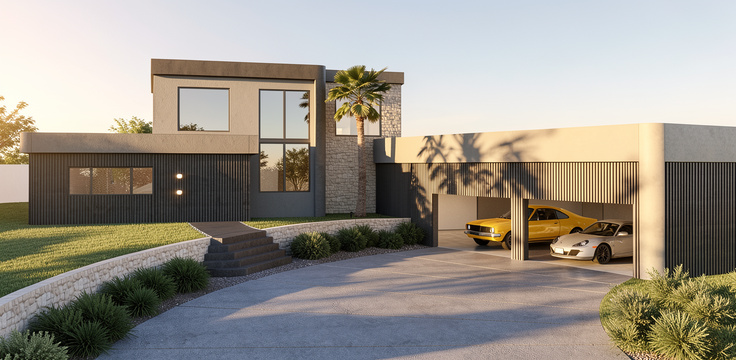 enhance the realism of the existing architectural design while maintaining the same materials and textures focus on realistic lighting shadows and surface details to create a lifelike appearance ensure the mixture of wood siding is preserved in the correct areas making them look authentic and cohesive this is in montana add montana landscape with nice landscaping near the house add montana vegetation around the house make wood siding modern vertical 10 wider plank siding natural cedar light warm honey tone clear matte finish clean sharp edges minimal knots contemporary scandinavian farmhouse style high end residential exterior the siding is not board and batten it is wide planks with realistic wood grain texture make the wood siding planks the same width as the image reference do not add a chimney add mountains far off in the distance do nice landscaping in front of house and and native montana vegetation in forground dont add chimney nice yard in foreground remember the wood siding should be clear with almost no knots