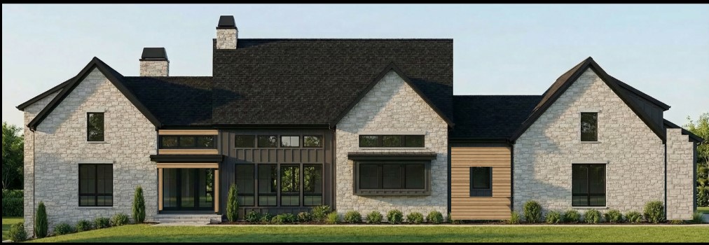 show this image as a photograph with the updated stone on the far right of the home