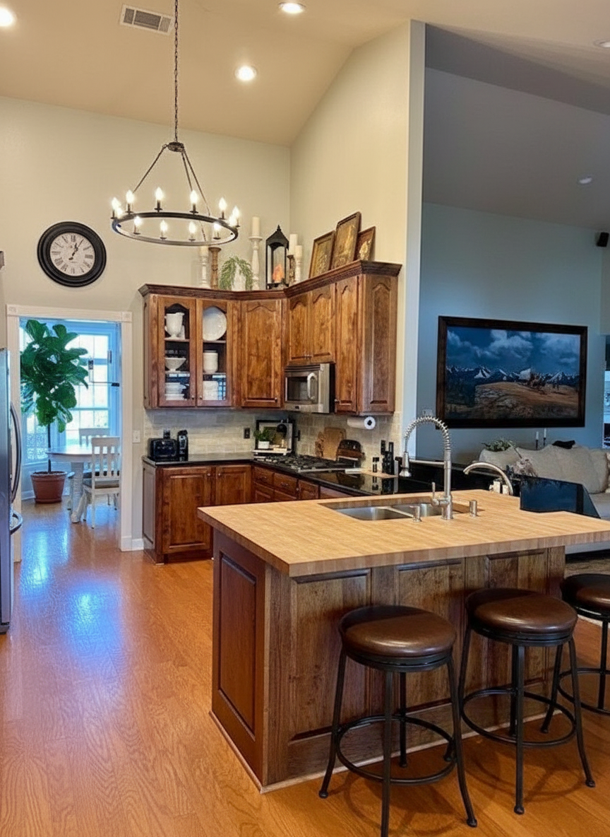 neutral lighting tone modern architectural home open airy ambience with natural light no cornices artwork to look painterly light grey coloured australian bluestone floor tile realistic carrara marble table top realistic carrara marble credenza top medium charcoal coloured credenza cupboards black aluminium window recessed downlights caramel coloured dining chairs with stainless steel legs white american oak timber joinery kitchen cupboards beige coloured ribbed carpet on stair white coloured stringer to stair fine steel stair handrail coloured black solid curved wall in front of staircase to be colour white light from large format doors behind camera out of side sliding white door coloured white on far left hand side stainless steel fridge
